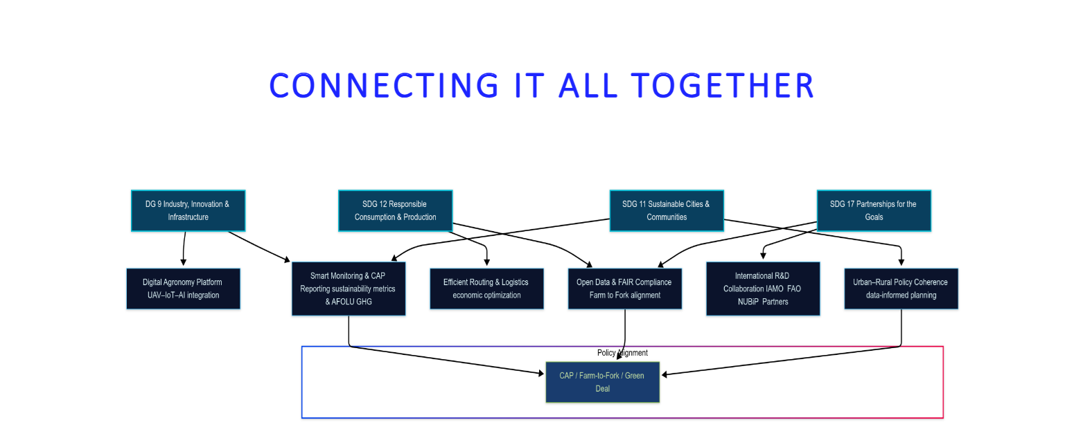 Система дозволяє здійснювати безперервний моніторинг ефективності сільського господарства при вирішенні реальних проблем, включаючи пов'язані з війною обмеження на експлуатацію БПЛА, зростання витрат на енергію та фрагментовану інфраструктуру даних. Застосовуючи зважені моделі прийняття рішень та адаптивну логіку маршрутизації, платформа дозволяє фермам та планувальникам підтримувати надійну, економічно ефективну роботу навіть у порушених умовах. За словами Володимира НАЗАРЕНКА, «цифрова трансформація в сільському господарстві — це не лише про технології, а й про стійкість, прозорість та співпрацю. Об'єднуючи потоки даних за допомогою сумісних архітектур, ми можемо забезпечити як стійкість, так і економічну ефективність, навіть під час кризи».