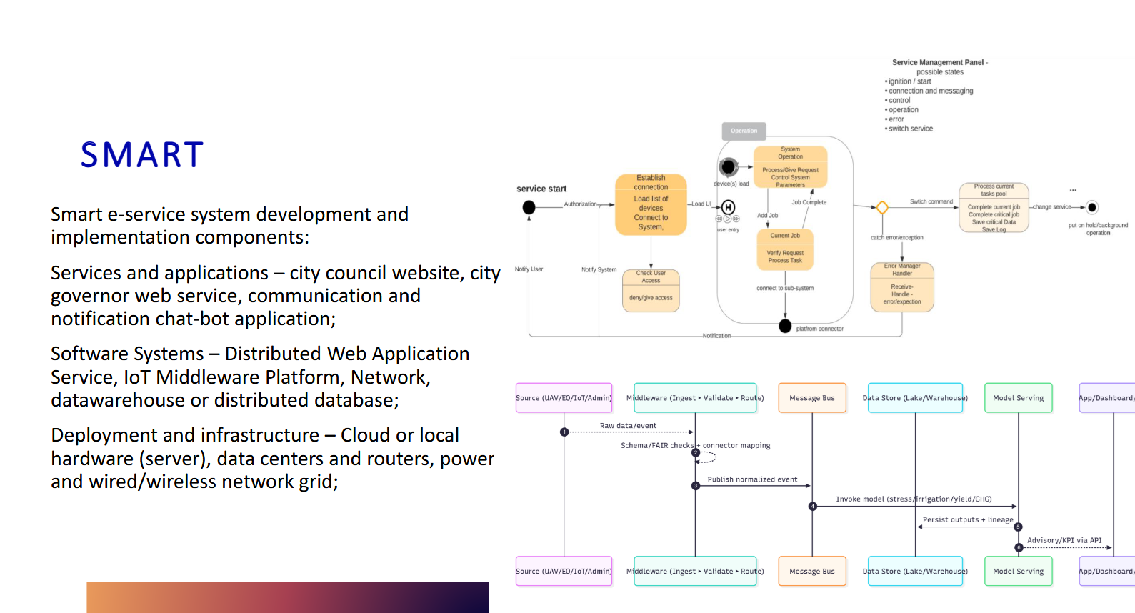 Спираючись на проведені дослідження та прототипи цифрових платформ, Володимир представив екосистему даних на основі проміжного програмного забезпечення, призначену для інтеграції телеметрії IoT, зображень БПЛА, супутникових даних та економічних показників у єдине середовище підтримки прийняття рішень. Цей підхід, наголосив автор, поєднує маршрутизацію даних у режимі реального часу, оптимізацію витрат та показники сталого розвитку в єдиній інтелектуальній інфраструктурі.