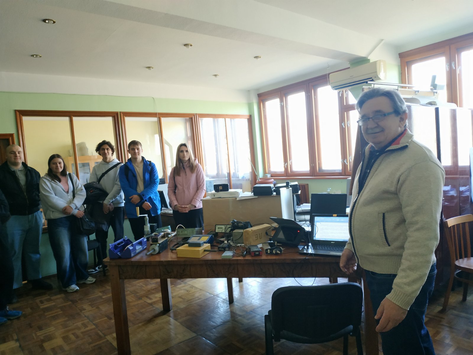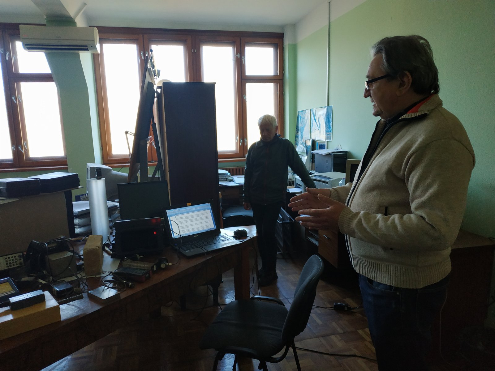 Завідувач лабораторією технічної діагностики і неруйнівного контролю будівельних конструкцій, виробів та матеріалів, к.т.н. Віталій Павлович Глуховський провів ознайомлення та продемонстрував основні принципи роботи із сучасними приладами та обладнанням, які застосовуються у реальних інструментальних обстеженнях будівельного фонду України.