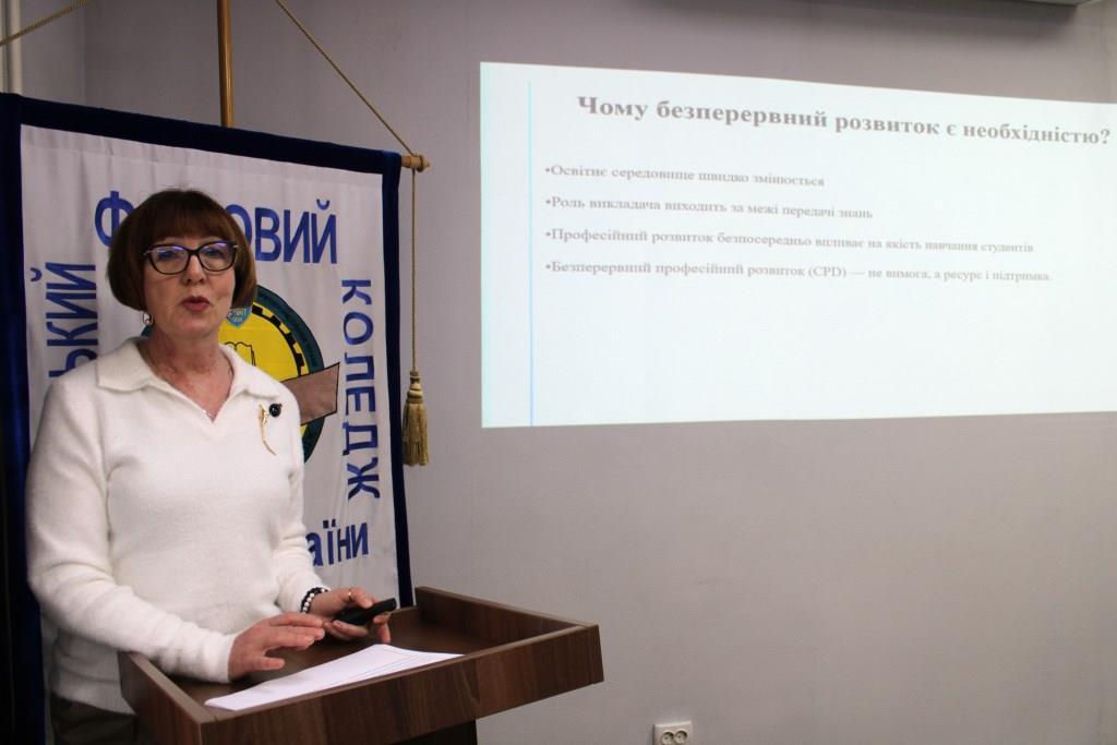 13 січня роботу семінарів відкрила директор коледжу Олена ЛИТОВЧЕНКО, яка наголосила на важливості постійного професійного розвитку педагогічних працівників в умовах стрімкої цифрової трансформації освіти та викликів сьогодення. У своєму виступі вона підкреслила, що впровадження сучасних освітніх технологій, інноваційних методів навчання й цифрових інструментів є необхідною складовою підвищення якості освітнього процесу та формування конкурентоспроможного фахівця.