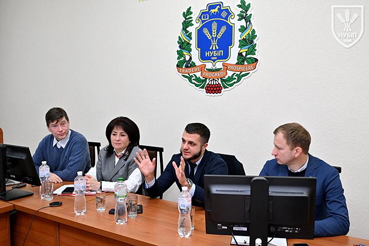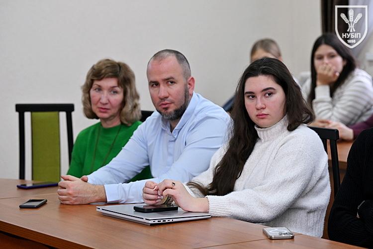 Вступні слова виголосили начальник відділу міжнародних проєктів НУБіП України Олександр Сошенський та декан гуманітарно-педагогічного факультету Інна Савицька. Вони підкреслили важливість залучення фахівців-практиків до освітнього процесу, необхідність підготовки нової генерації переговорників та роль університету в розвитку міжнародної співпраці, зокрема в межах програми Erasmus+ напряму Жан Моне. Представники адміністрації наголосили, що університет активно розширює партнерські зв’язки з європейськими інституціями, бере участь у міжнародних проєктах і готує студентів до викликів євроінтеграції.