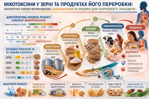 Оскільки всі шість токсинів є термостабільними, єдиною ефективною стратегією залишається профілактична: тимчасове збирання, швидке просушування зерна та збереження умов. Будь-яке запізнення на рівні поля — це незворотне рішення для всього подальшого харчового ланцюга.