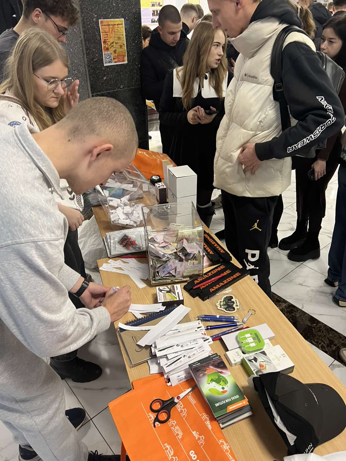 Основну допомогу в організації благодійного аукціону надали компанії-партнери факультету, які передали цінні призи – макети техніки та знарядь, годинники та парасольки, ліхтарики та рулетки, кепки та футболки, термокухлі та інші лоти, які й стали лотами аукціону.