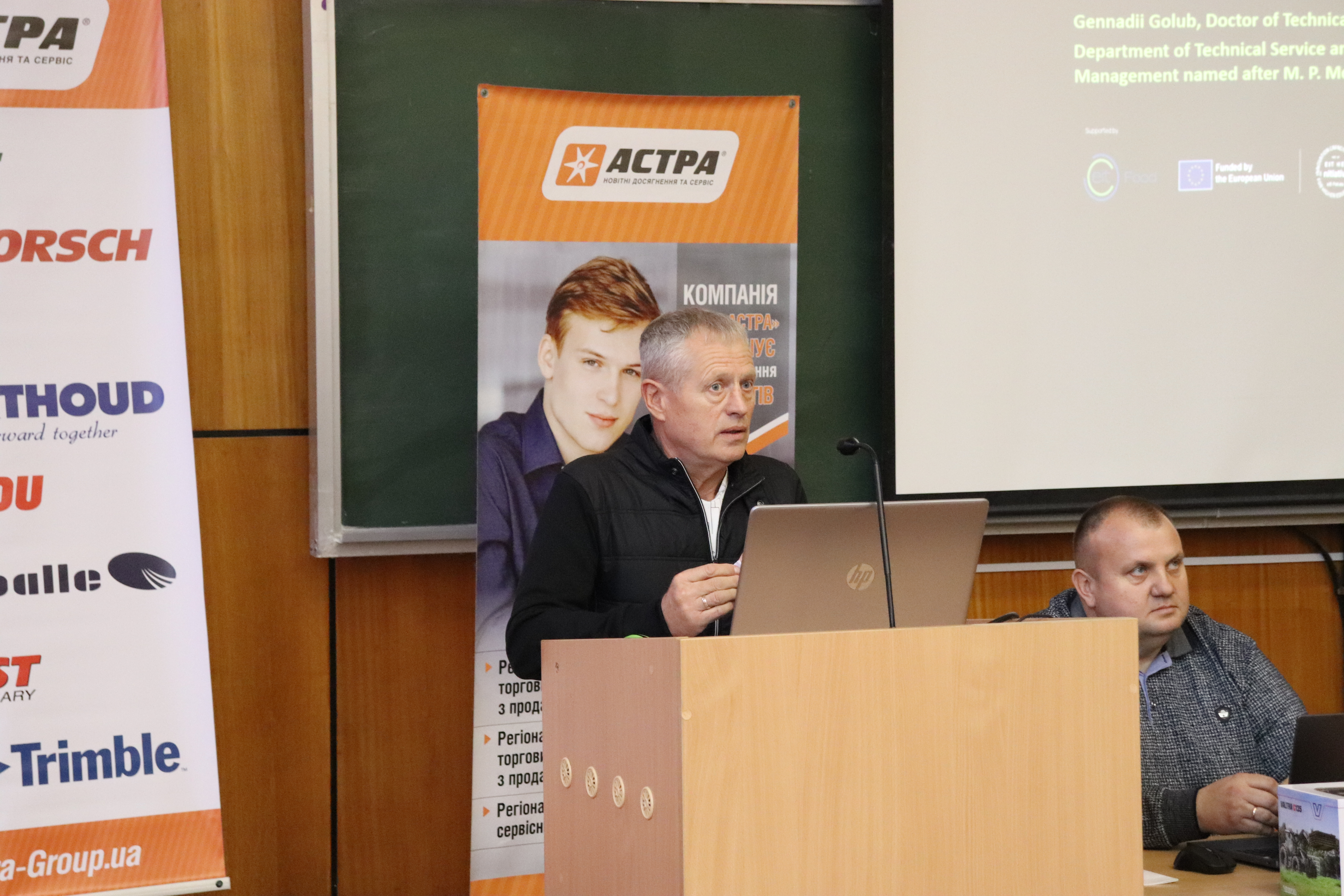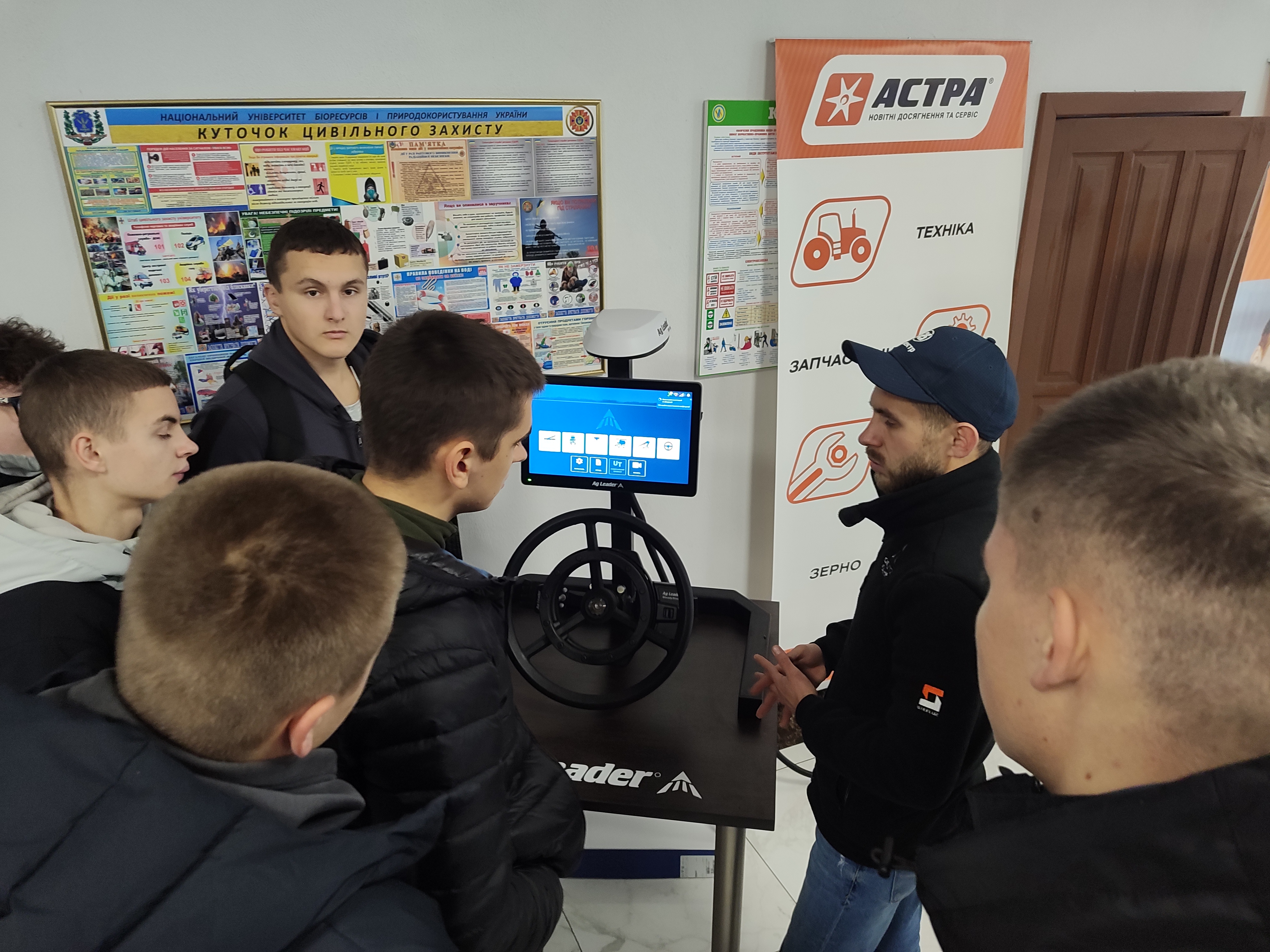 Компанія «Спектр-Агро» привезла спеціалізовані стенди та обладнання й організувала майстер-клас із налаштування засобів точного землеробства, який провів випускник факультету Олексій МОЖЧІЛЬ.