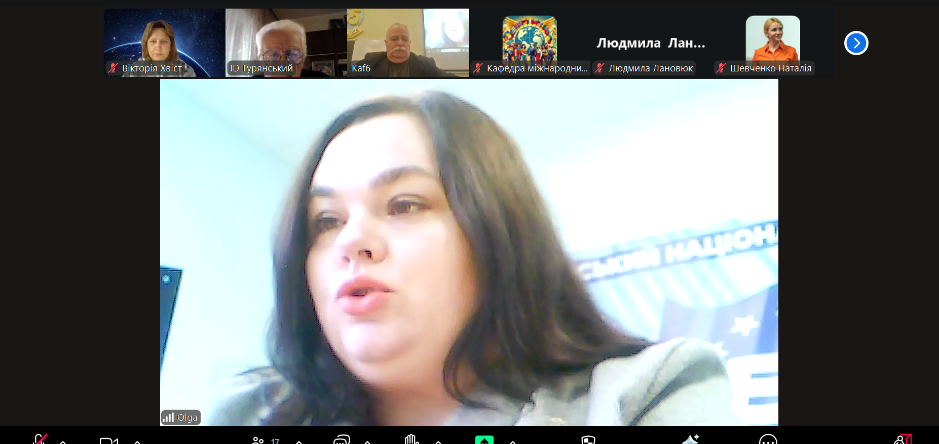 З вітальним словом до присутніх звернулась заступник декана гуманітарно-педагогічного факультету, докторка філологічних наук, професорка Світлана Харченко. Вебінар, зокрема зазначила вона, є черговим важливим майданчиком для ґрунтовного аналізу сучасних викликів, з якими стикається українська дипломатія, та напрацювання ефективних стратегій для їх подолання, висловивши сподівання, що активна участь, жваві дискусії та креативні ідеї допоможуть глибше зрозуміти ці виклики та визначити шляхи для зміцнення позицій нашої держави на міжнародній арені.