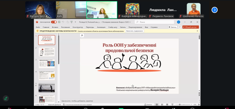 - ЗВО 4 курсу ОПП «Міжнародні економічні відносини» Валерія Поліщук – «Роль ООН у забезпеченні продовольчої безпеки»