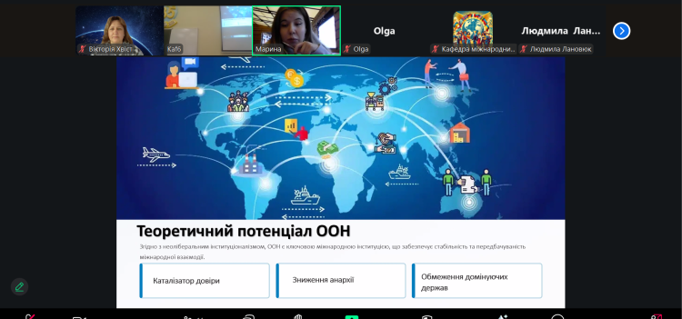 - магістрантка І курсу ОПП «Міжнародний менеджмент» Анна Семеняченко доповіддю «Виклики та ризики для функціонування ООН у ХХІ столітті»;