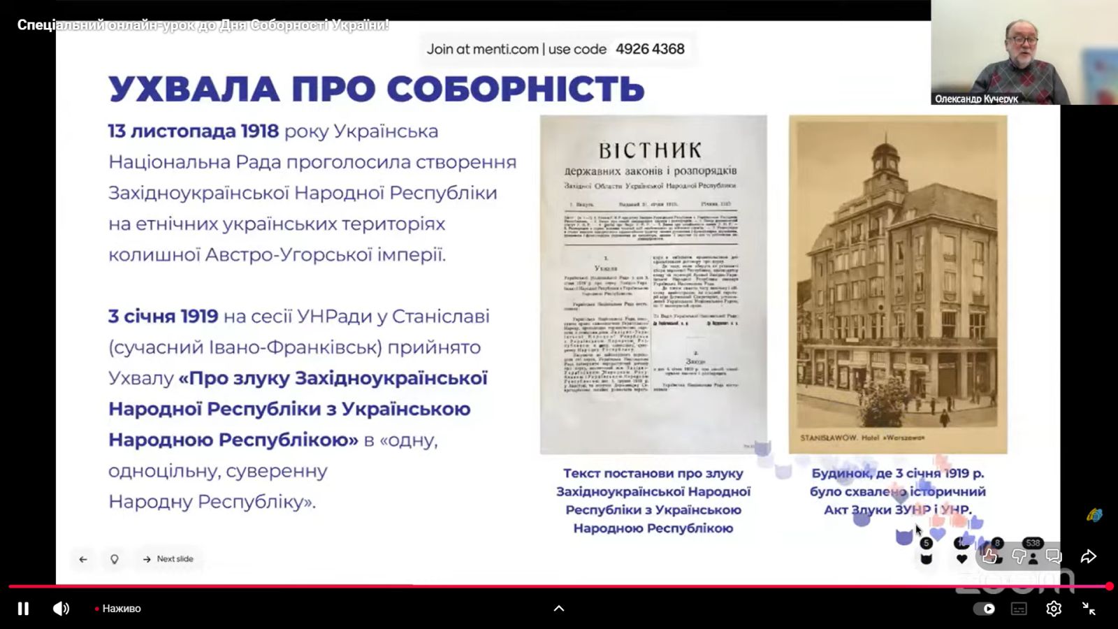 22 січня 2026 року всі студенти і викладачі кафедри педагогіки взяли участь у всеукраїнському онлайн заході Освітнього центру Верховної Ради України, присвяченого Дню Соборності України.