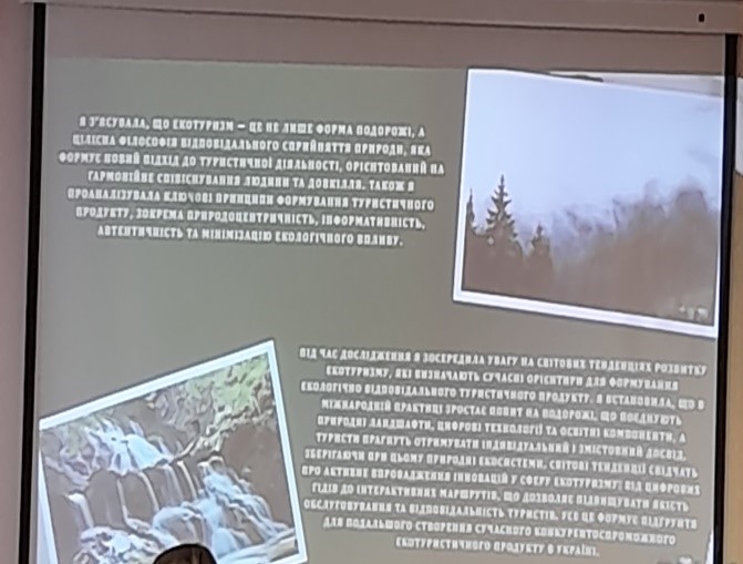 Крістіна ШЕВЧЕНКО презентувала результати дослідження стретегії розвитку міжнародного туризму в Україні. За об’єкт дослідження Крістіна вибрала вподобану дистинацію – західні регіони України.