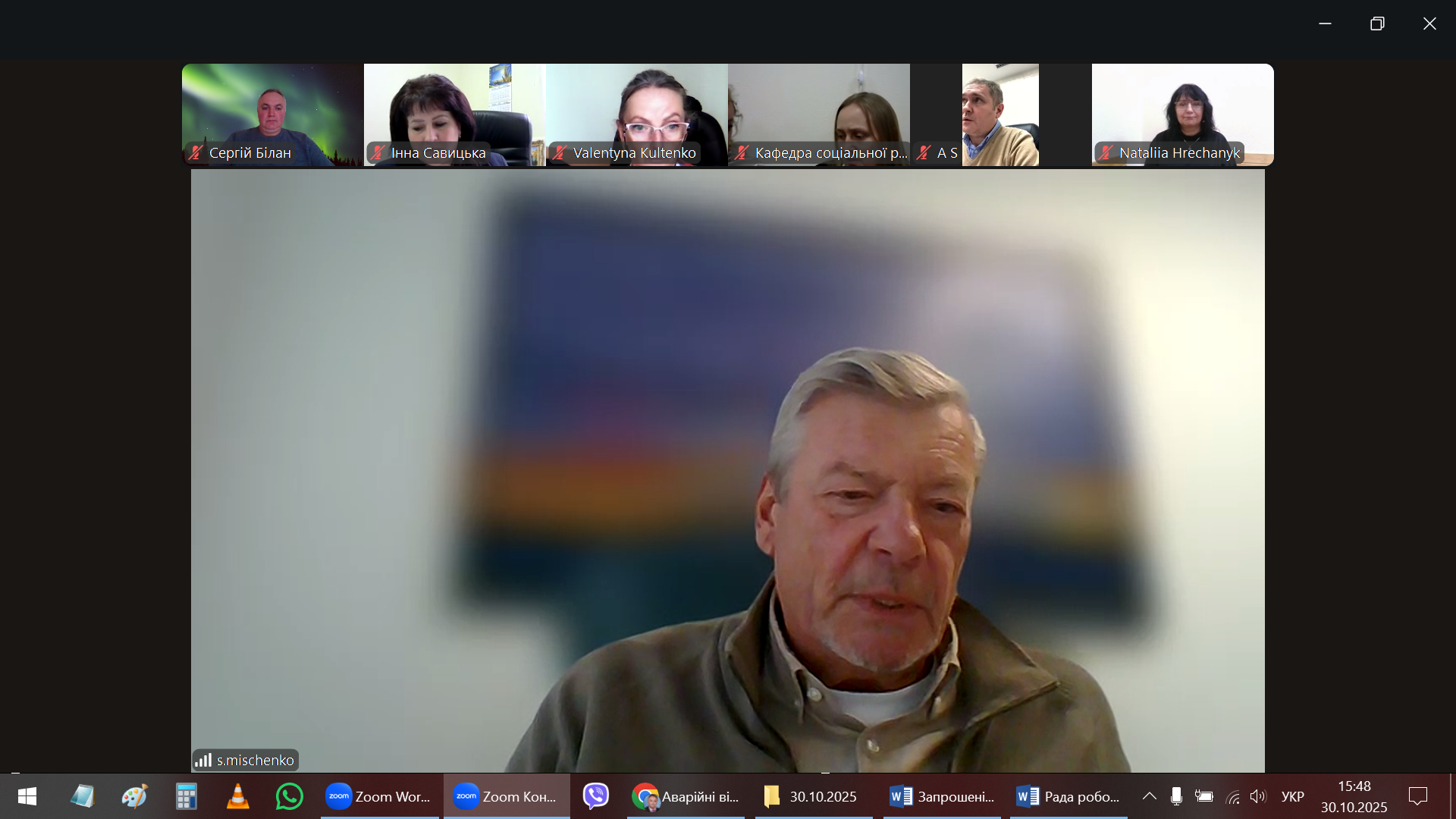 30 жовтня 2025 р. відбулося засідання Ради роботодавців гуманітарно-педагогічного факультету в дистанційному форматі під головуванням декана факультету Інни Савицької.