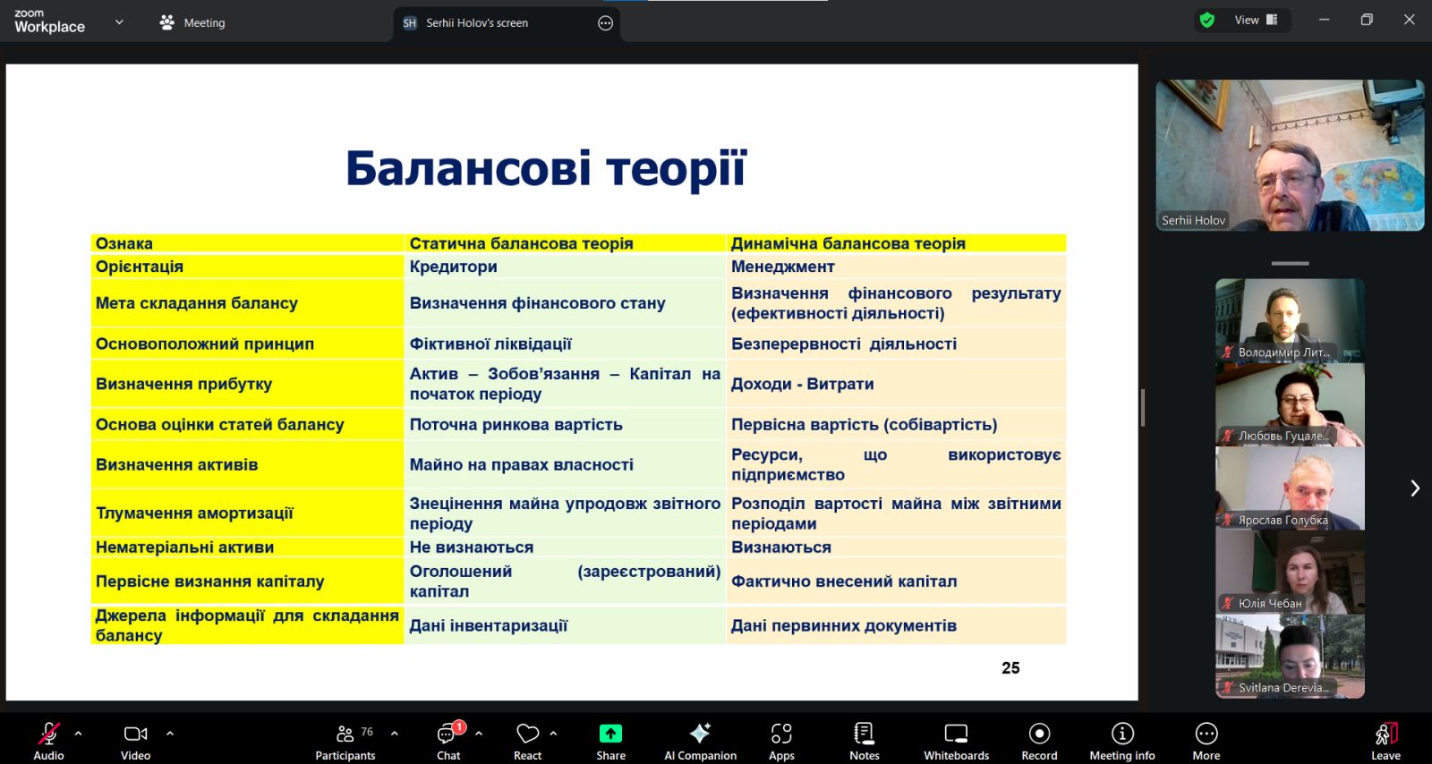 5 листопада 2025 року здобувачі вищої освіти кафедри обліку та оподаткування НУБіП України взяли участь в онлайн-лекції-презентації підручника «Теорії і методи бухгалтерського обліку: сучасний погляд», підготовленого колективом авторів – Сергієм ГОЛОВОМ, Ярославом ГОЛУБКОЮ, Валентиною КОСТЮЧЕНКО та Людмилою ЧИЖЕВСЬКОЮ. Організатором заходу виступив Державний університет «Житомирська політехніка» у партнерстві з провідними українськими закладами вищої освіти, зокрема Національним університетом біоресурсів і природокористування України, Мукачівським державним університетом, Миколаївським національним аграрним університетом.
