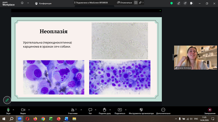 У лекції лектор детально висвітлила особливості дослідження фізичних, хімічних показників сечі тварин різних видів, дослідження осаду сечі та акцентувала увагу на діагностичних змінах за різної патології.