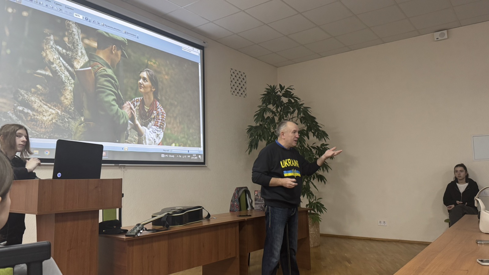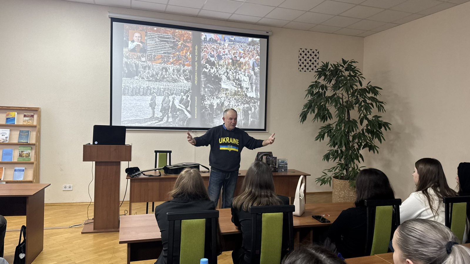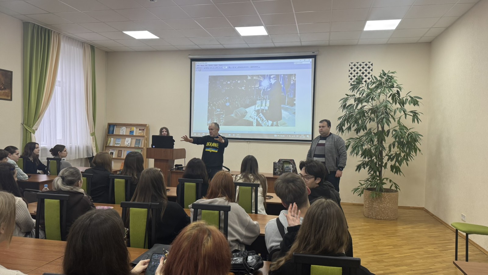 Після цього наш гість задав аудиторії таке питання: «хто знає, що таке УПА?» Спочатку у залі була тиша, а потім студенти самі захотіли розмовляти та дискутувати на різні теми. Ми разом згадували другий зимовий похід Армії УНР, битви УПА, студентську революцію на граніті, підпільну діяльність, «Холодний яр», Революцію Гідности… Це ті події, про які не можна мовчати, особливо у наш час. І не могли пройти повз тих героїв, завдяки яким ми маємо змогу жити у нашій державі. Григорій ЧИЖЕВСЬКИЙ, Петро БОЛБОЧАН, Юрій ГОРЛІС-ГОРСЬКИЙ (Городянин-Лісовський), брати Дмитро, Олексій, Василь СОКОЛОВСЬКІ та їхня 16-річна сестра Олександра (отаманна Маруся) — це герої, які не забуті, вони приклад героїзму, патріотизму та витримки.