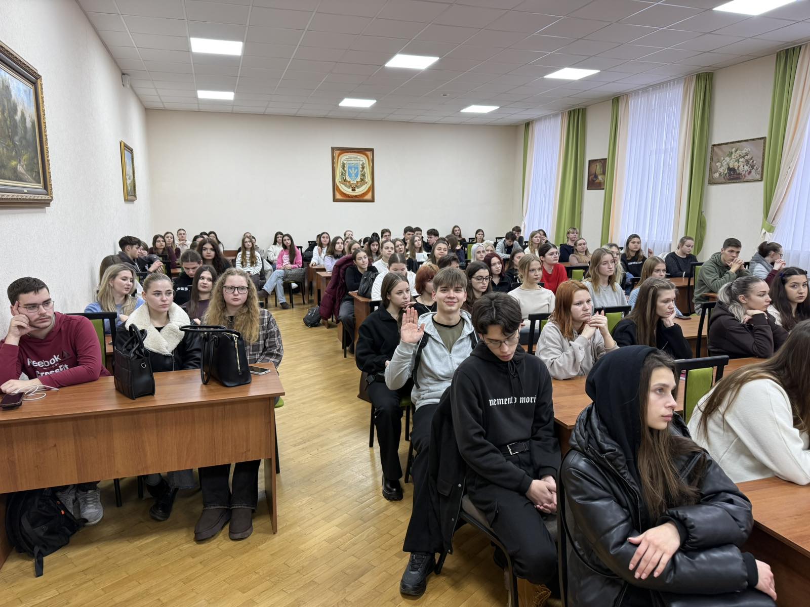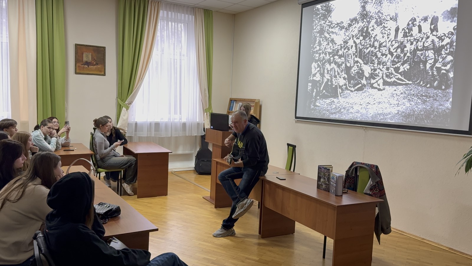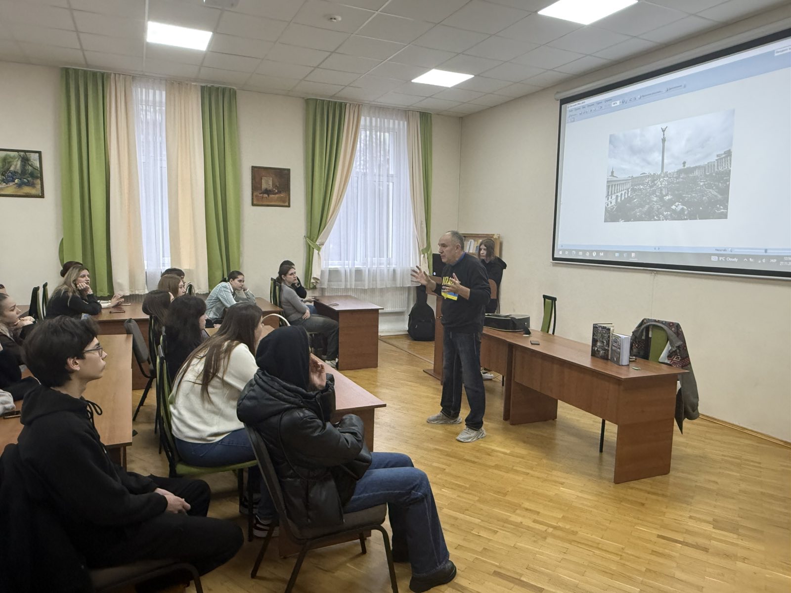 Після цього наш гість задав аудиторії таке питання: «хто знає, що таке УПА?» Спочатку у залі була тиша, а потім студенти самі захотіли розмовляти та дискутувати на різні теми. Ми разом згадували другий зимовий похід Армії УНР, битви УПА, студентську революцію на граніті, підпільну діяльність, «Холодний яр», Революцію Гідности… Це ті події, про які не можна мовчати, особливо у наш час. І не могли пройти повз тих героїв, завдяки яким ми маємо змогу жити у нашій державі. Григорій ЧИЖЕВСЬКИЙ, Петро БОЛБОЧАН, Юрій ГОРЛІС-ГОРСЬКИЙ (Городянин-Лісовський), брати Дмитро, Олексій, Василь СОКОЛОВСЬКІ та їхня 16-річна сестра Олександра (отаманна Маруся) — це герої, які не забуті, вони приклад героїзму, патріотизму та витримки.