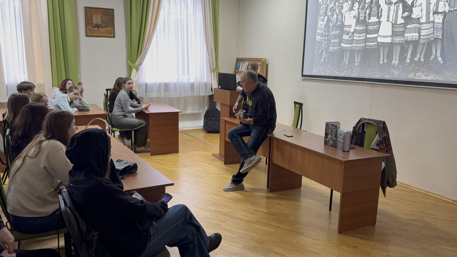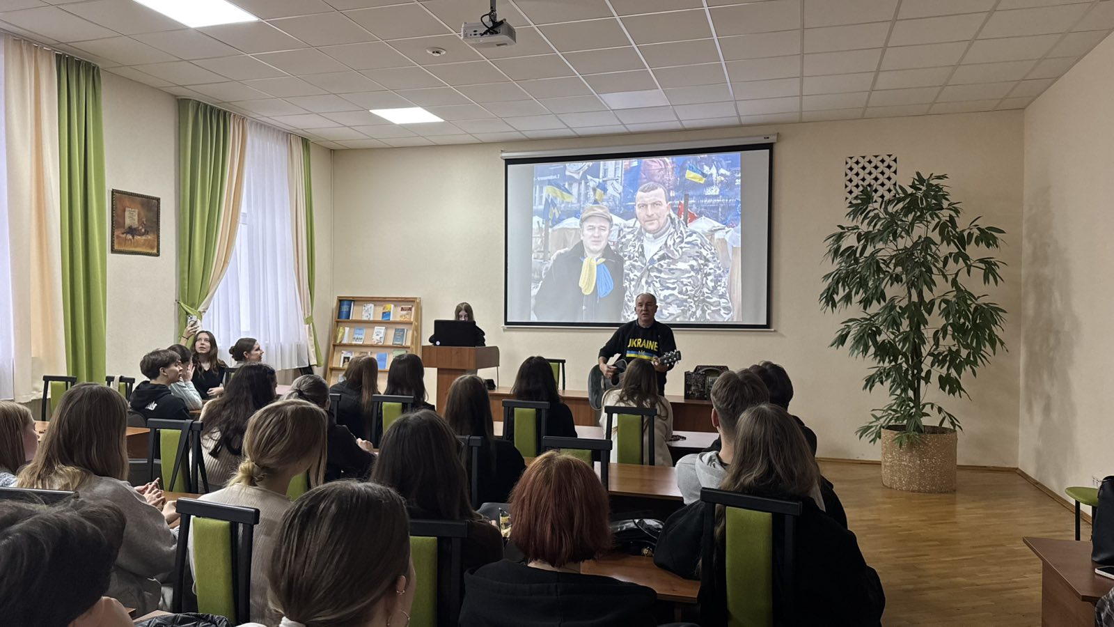 27 листопада студентам гуманітарно-педагогічного факультету дуже пощастило зустрітись із Володимиром Васильовичем ГОНСЬКИМ, людиною з великої літери. Український громадсько-політичний діяч, науковець, публіцист, бард, ведучий найбільших патріотичних протестних акцій, зокрема Мовного майдану, Євромайдану, артволонтер, заслужений діяч мистецтв України — це все про нашого гостя.