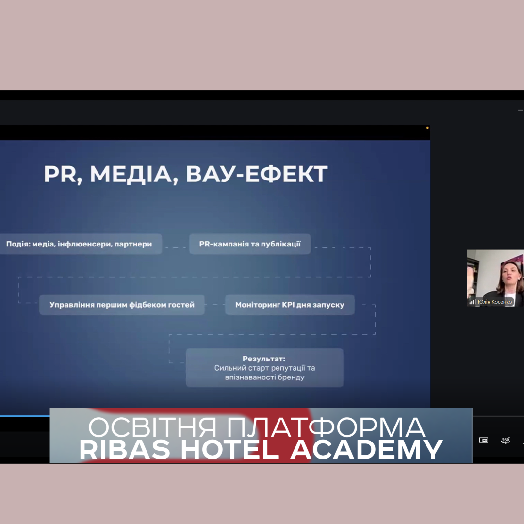 Спікеркою заходу виступила Юлія КОСЕНКО, операційний директор компанії Ribas Hotels Group та співзасновниця Ribas Hotel Academy. У межах ефіру експертка поділилися практичним досвідом ефективного управління на старті проєкту, окреслила типові помилки в сервісі та команді, що виникають на початку функціонування готельного закладу, та представила ефективні підходи до їх вирішення.