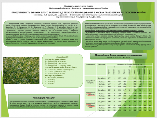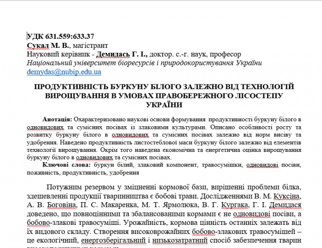 Сукал М.В. керівник професор Демидась Г.І. | тези