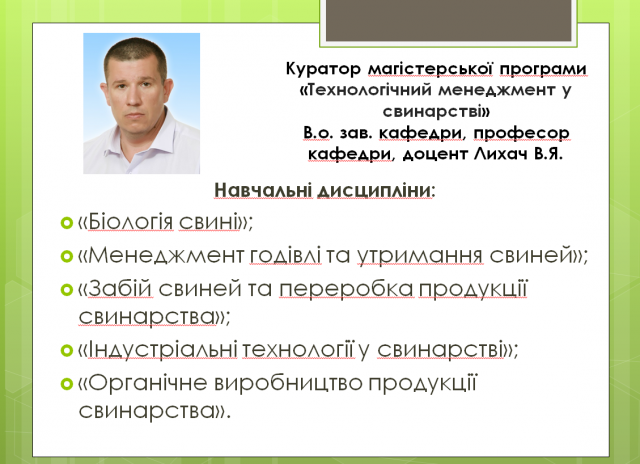 Куратор магістерської програми “Технологічний менеджмент у свинарстві”