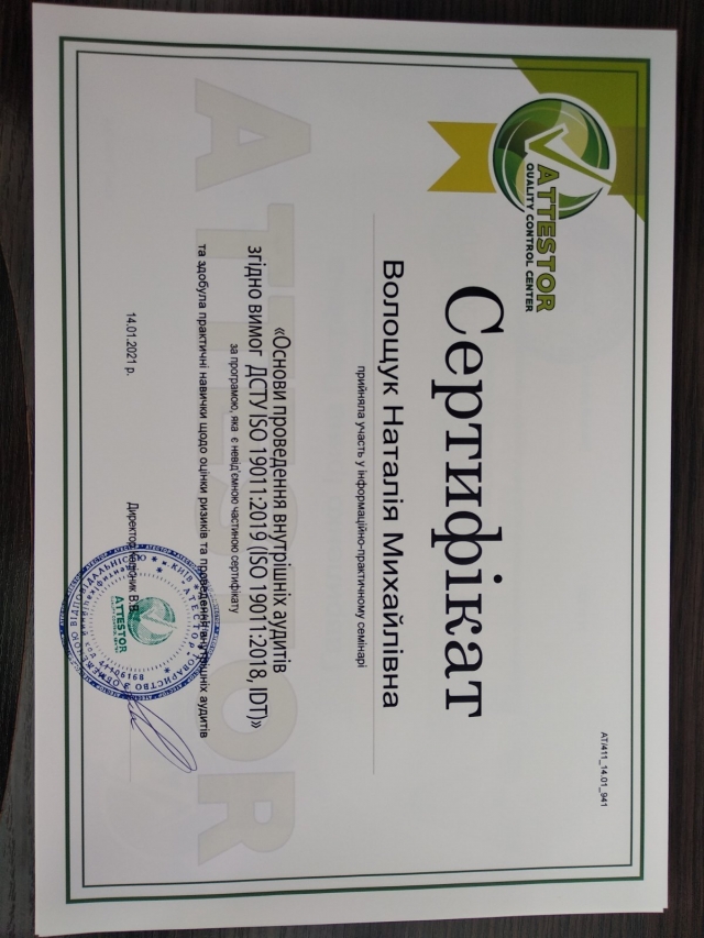 Сертифікати про підвищення кваліфікації: міжнародний сертифікат1, міжнародний сертифікат 2, міжнародний сертифікат 3, внутрійшній сертифікат 1, внутрішній сертифікат 2, внутрішній сертифікат 3.