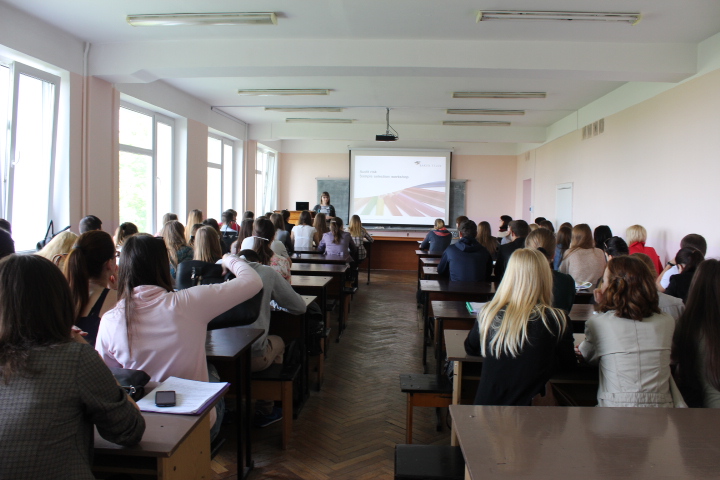 15 травня в черговий раз до університету завітала аудитор компанії «Baker Tilly Ukraine» Інна Кузіна з лекцією для студентів спеціальності «Облік і аудит». Цього разу вона розповіла про аудиторський ризик, його складові, способи оцінки та зниження. Студенти і викладачі поспілкуватися з практикуючим аудитором, дізналися про практичні аспекти роботи в сфері аудиту. Гостя розповіла про міжнародні стандарти аудиту, які регулюють процедуру визначення рівня ризику та дії аудитора відповідно до отриманих оцінок, особливості їх застосування у різних ситуаціях. Лекція пройшла у формі діалогу, слухачі ставили лектору чимало запитань.