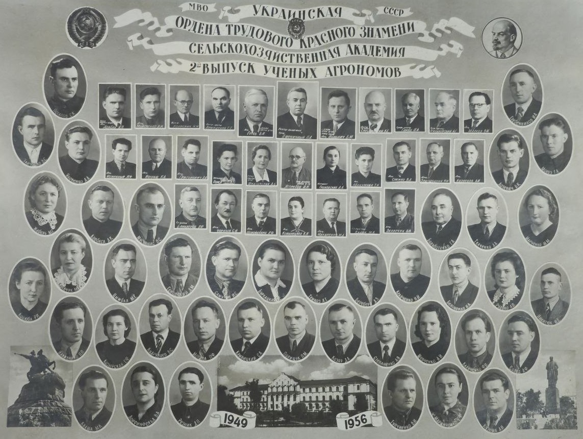 1956 рік. 2 випуск учених агрономів (1949–1956). Українська Ордена Трудового Червоного Прапора сільськогосподарська академія.