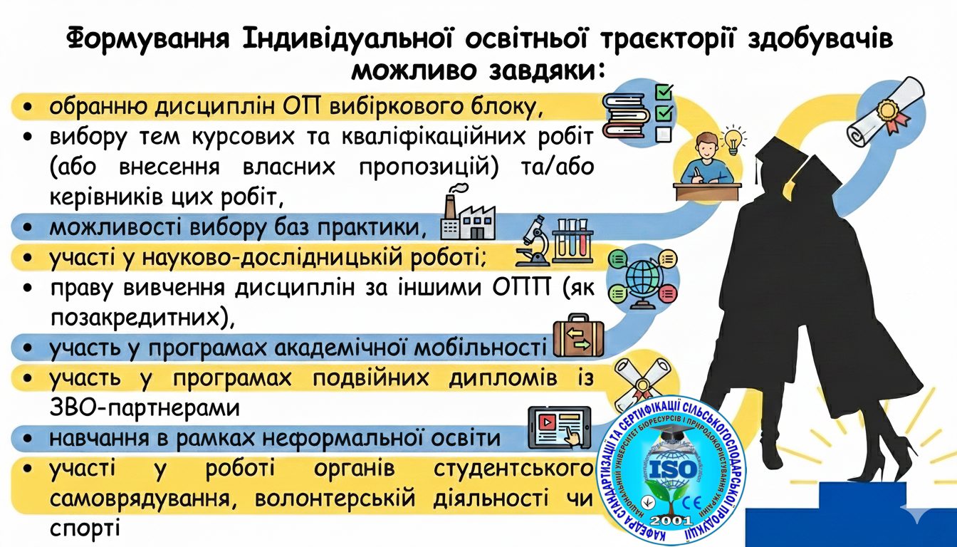 Детальний порядок обрання, реєстрації та включення вибіркових дисциплін до Вашого Індивідуального навчального плану визначається відповідним Положенням Університету про індивідуальну освітню траєкторію (або аналогічним внутрішнім нормативним документом).