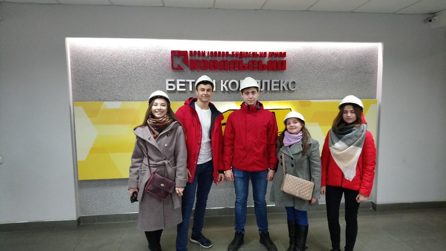 Члени гуртка "Сучасна архітектура" разом із студентами кафедри будівництва відвідали сучасний завод, що займається виготовленням залізобетонних виробів. Під час проходження екскурсії студенти мали можливість ознайомитися з лабораторією і технологією контролю якості продукції, яку проводять, умовами зберігання готової продукції та постачанням необхідних матеріалів на завод.