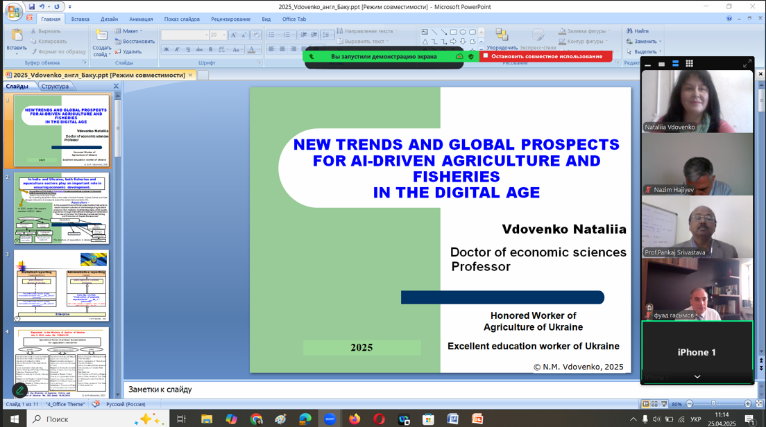 Наталія ВДОВЕНКО виступила з доповіддю на тему: «New trends and global prospects for AI-Driven agriculture and fisheries in the digital age» (Глобальні аспекти розвитку рибного господарства у цифрову епоху). Програма конференції: 2025_Програма Баку.pdf