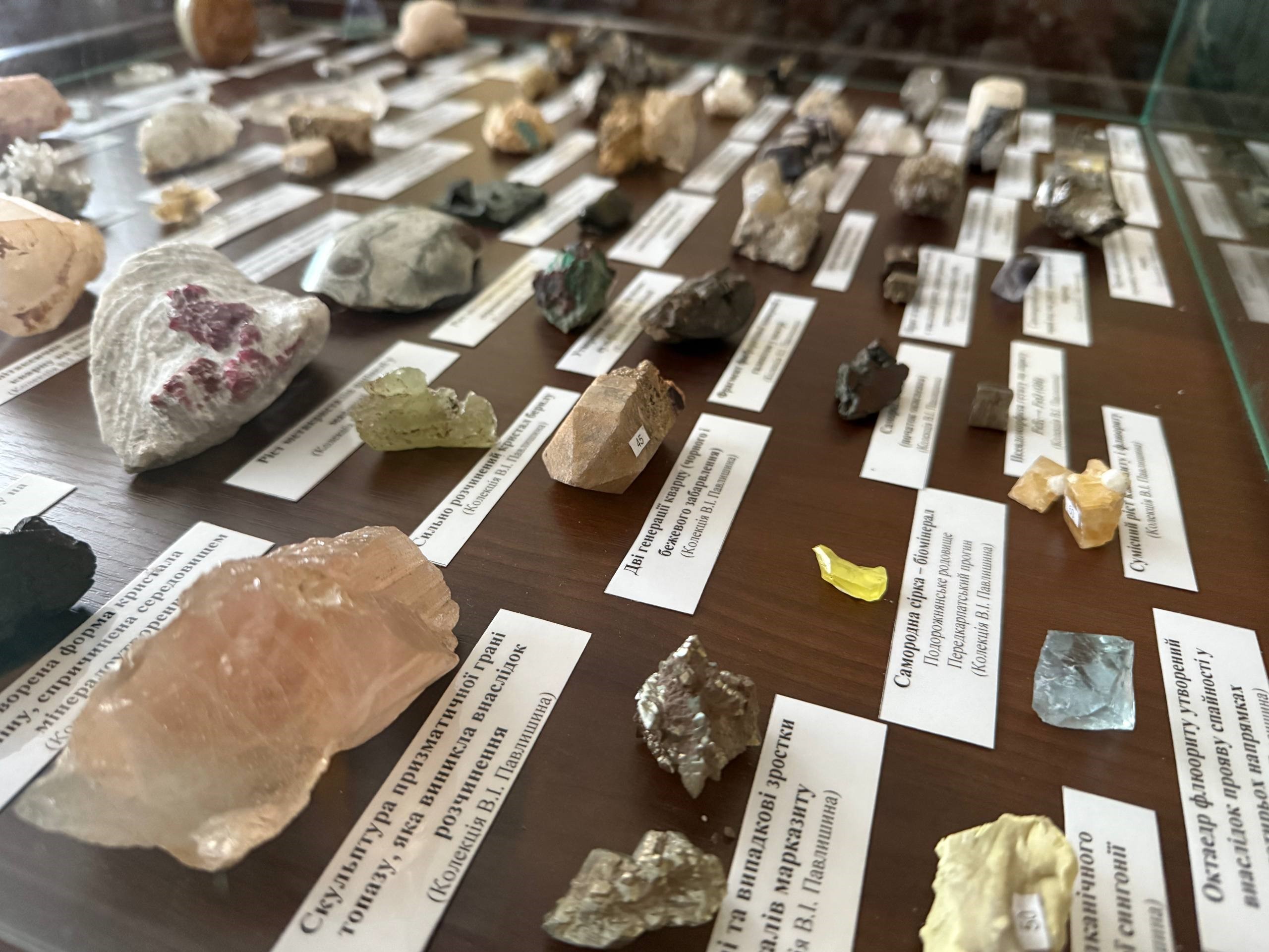 У геологічному та палеонтологічному музеях була представлена колекція зразків мінералів, гірських порід та скам’янілих решток. Експонати виставки демонстрували осадові породи, метаморфічні та магматичні породи, форми знаходження мінералів у природі, силікати, сульфіди, сульфати, галоїди та багато ін. Як розповів екскурсовод, унікальні колекційні матеріали були зібрані під час проведення експедицій та навчальних практик студентів Україною та за її межами, а також надані працівниками-науковцями інших установ.