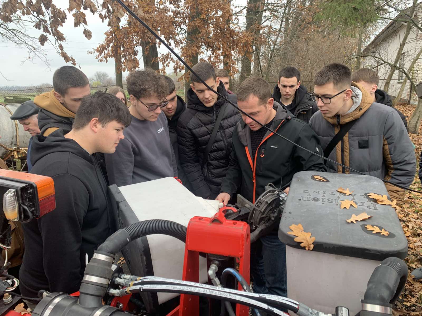 За підтримки Центру розвитку кар’єри університету, в першій декаді листопада поточного року, студенти спеціальностей «Агроінженерія», «Автомобільний транспорт», «Машинобудування» та «Садово-паркове господарство» відвідали виїзні практичні заняття, які проводилися на базі ВП НУБіП України НДГ «Агрономічна дослідна станція», під керівництвом представників відділу практичного навчання і працевлаштування Олега Бачинського і Ігоря Сівака та директора підприємства Юрія Росамахи. Мета навчання полягала в опануванні функціоналу сучасних аграрних машин, адже господарство має широкий асортимент техніки провідних виробників світу.