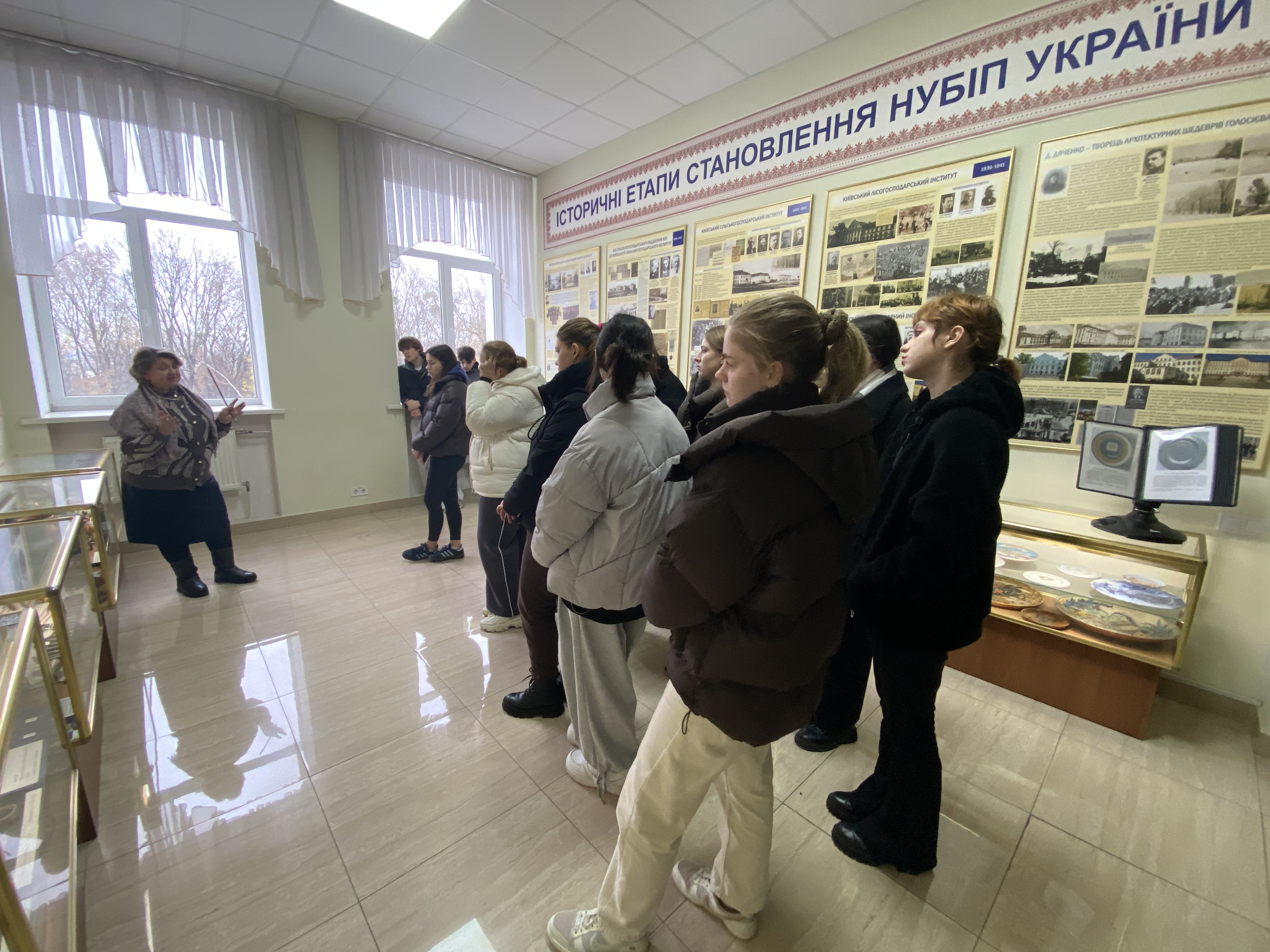 4 листопада 2025 року студенти 1 курсу гуманітарно-педагогічного факультету, спеціальності «Практична соціальна психологія» з доцентом кафедри філософії та міжнародної комунікації Оксаною БУЛГАКОВОЮ відвідали Музей історії Національного університету біоресурсів і природокористування України.