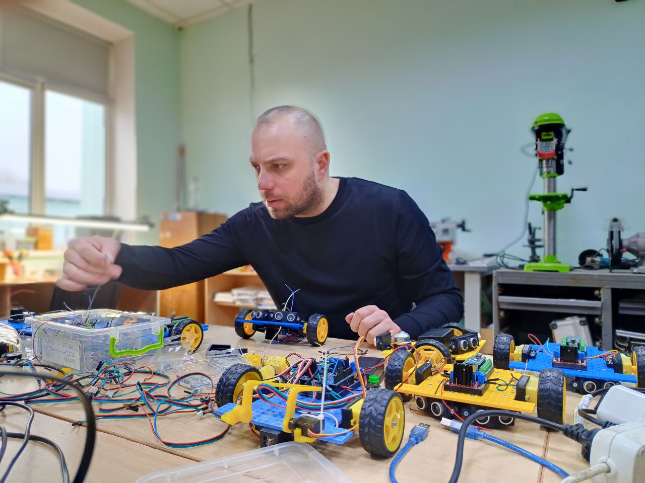 Виготовлені моделі використовуються у навчальній роботі для постановки лабораторних робіт з атестованих дисциплін «Мобільні платформи та приводи роботів» і «Конструювання та програмування мобільної платформи робота». Процес створення розпочався з проєктування тривимірних моделей та електричних схем, після чого відбувся підбір необхідних електронних модулів. Серед електронних модулів використано плати Arduino, драйвери двигунів, ультразвукові датчики відстані та двигуни. Усі корпусні деталі були виготовлені за допомогою 3D-друку, а фінальна збірка перетворила окремі компоненти на повноцінні функціональні пристрої. Ці мобільні платформи вже впроваджені в навчальний процес. Окрім навчальної мети, ці моделі стали справжньою візитівкою кафедри під час профорієнтаційних заходів, незмінно викликаючи значну зацікавленість серед майбутніх вступників.