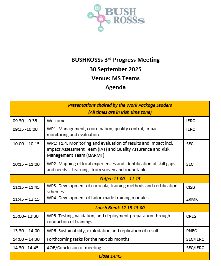 In accordance with the pre-agreed meeting agenda, the BUSHROSSs project partners discussed the implementation of the main work packages (WPs) and aligned the tasks for the next six months.