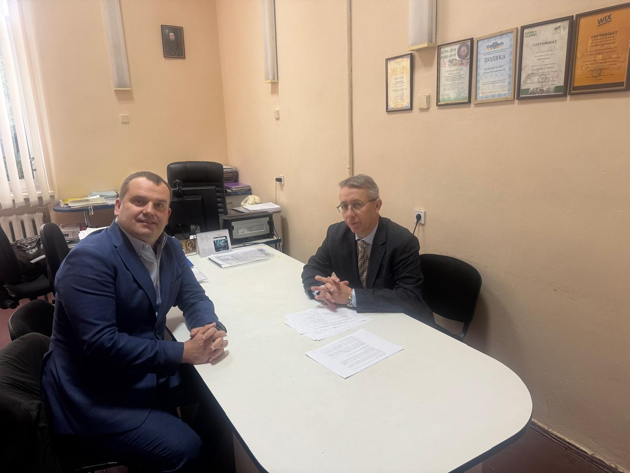 Олександр Сиволапов надав інформацію співробітникам кафедри про специфіку діяльності ТОВ «Індустрія Техногруп», що займається комплексним обслуговуванням та постачанням запчастин для кар’єрної та будівельної спецтехніки. Він озвучив пропозиції щодо покращення проходження виробничої та виробничо-дослідної практик, а також передав кафедрі елементи гідравлічних систем для використання в навчальному процесі. Також Олександр Володимирович представив пропозиції щодо поглиблення співпраці членів ради роботодавців від ТОВ «Індустрія Техногруп» з факультетом конструювання та дизайну і кафедрою надійності техніки.