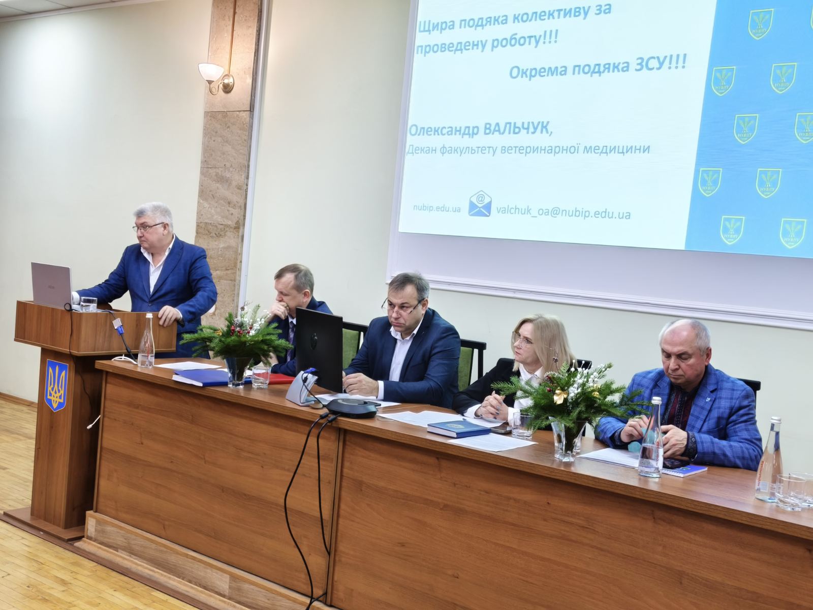 Декан факультету розпочав свій звіт з того, що майже за чотири роки війського стану колектив показав свою згуртованість, патріотизм та єдність. Олександр ВАЛЬЧУК наголосив, що завдячуючи Збройним Силам України ми продовжували готувати майбутніх висококласних лікарів ветеринарної медицини та здійснювати наукові дослідження.
