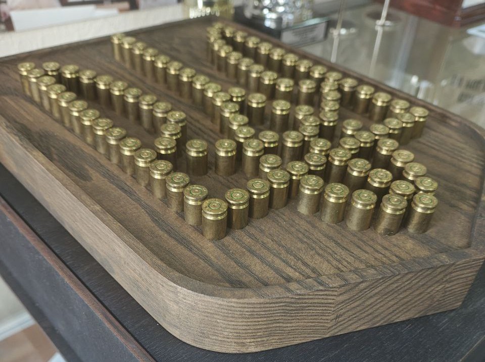 Герб України виготовлений із гільз від снарядів (експонат музею історії НУБіП України).
