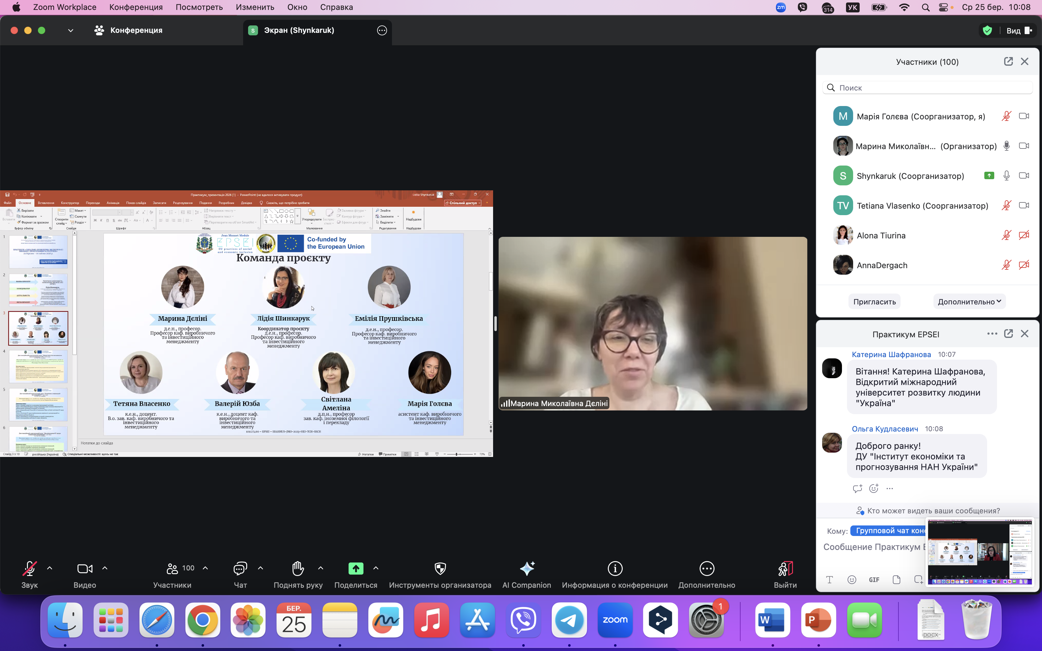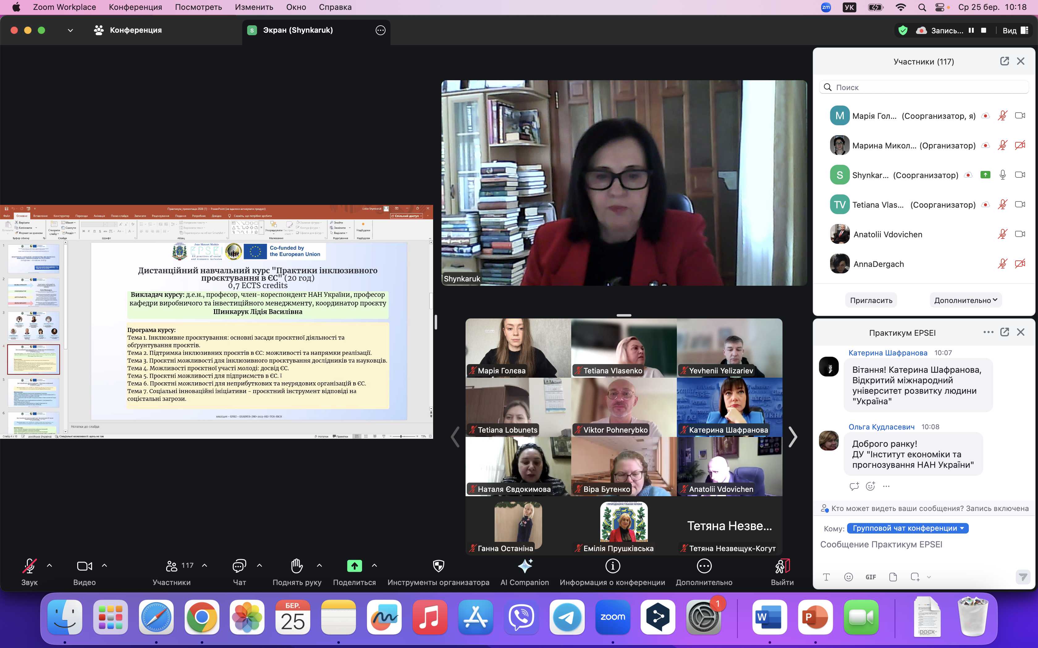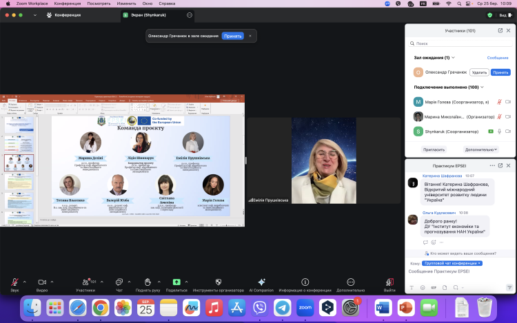 Координатор проєкту, член-кореспондент НАН України, доктор економічних наук, професор Лідія ШИНКАРУК подякувала слухачам за інтерес до Практикуму та презентувала його ключові цілі й завдання, структуру, зміст і систему оцінювання результатів навчання.