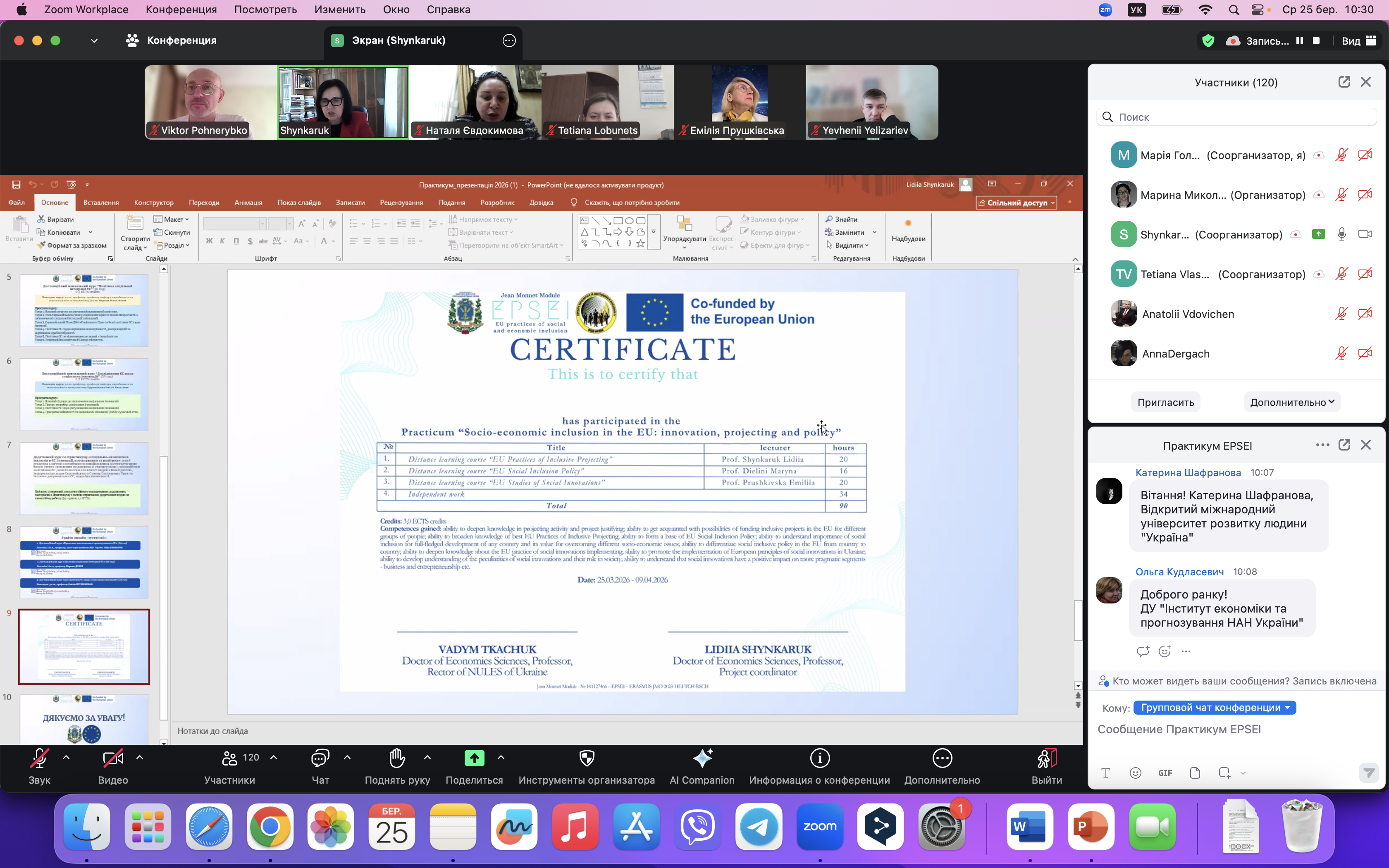 Учасники заходу високо оцінили змістове наповнення Практикуму «Соціально-економічна інклюзія в ЄС: інновації, проєктування та політики», підкресливши його актуальність, системність і відповідність сучасним викликам. Окремо було відзначено професіоналізм викладацького складу, якість організації освітнього процесу та виражену практичну спрямованість дистанційних курсів, що забезпечує ефективне поєднання теоретичних знань із реальними кейсами та практичними інструментами.
