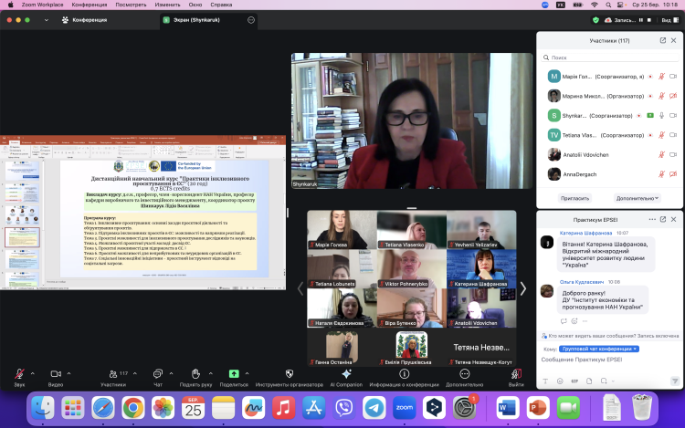 Лідія ШИНКАРУК, викладач дистанційного курсу «Практики інклюзивного проєктування в ЄС», акцентувала увагу на високій практичній значущості запропонованих курсів, які орієнтовані на формування у слухачів сучасних знань, аналітичних підходів і прикладних навичок, необхідних для розроблення та реалізації проєктів у сфері соціально-економічної інклюзії. Особливу увагу приділено здатності учасників застосовувати отримані компетентності у професійній діяльності, зокрема в умовах трансформації економічного та соціального середовища.