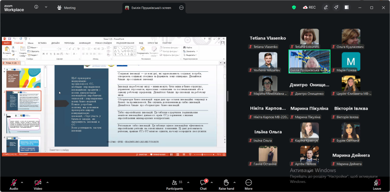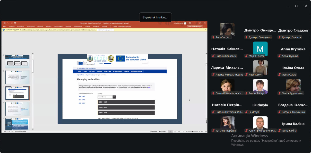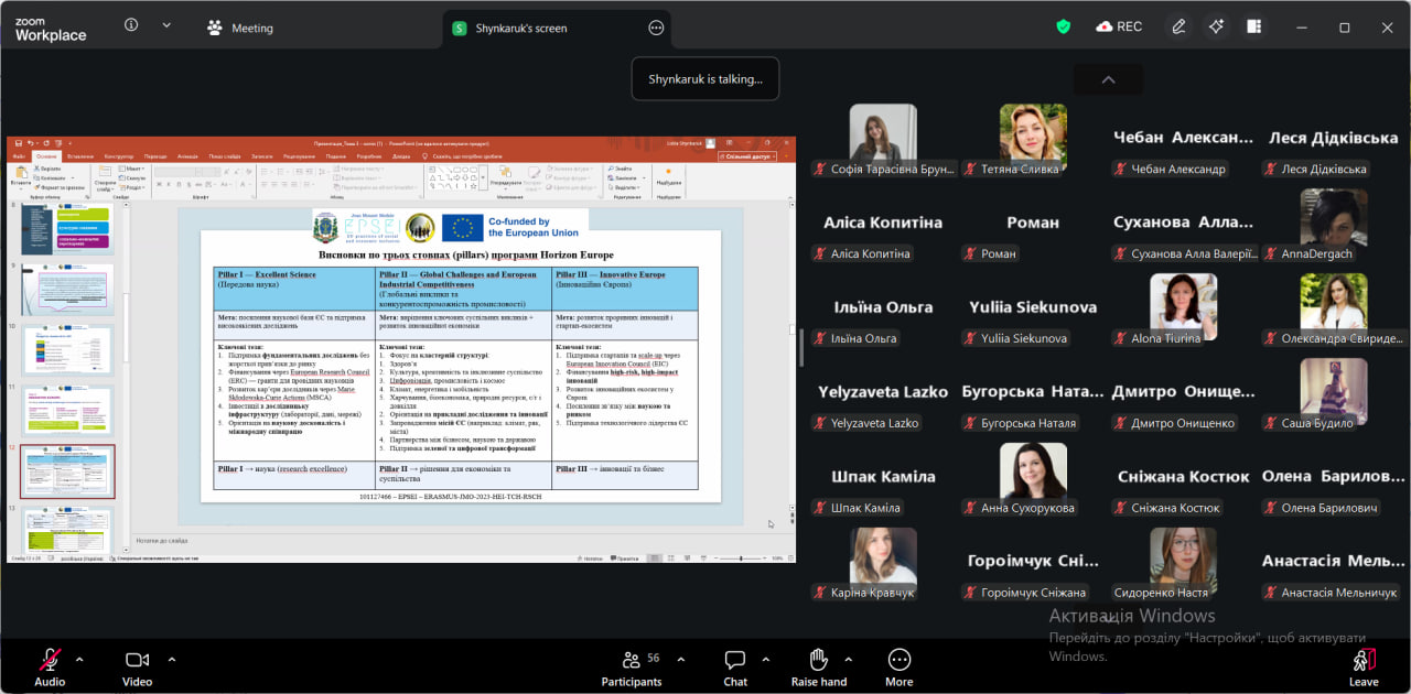 З 25 березня по 9 квітня 2026 року студенти наукового гуртка «Менеджмент і сьогодення» взяли активну участь у Практикумі «Соціально-економічна інклюзія в ЄС: інновації, проєктування та політики», що реалізується в межах програми Європейського Союзу Erasmus+ (модуль Жан Моне). Участь у цьому заході стала для студентів цінною можливістю не лише поглибити теоретичні знання, а й отримати практичні навички, які є актуальними в сучасних умовах розвитку економіки та ринку праці.