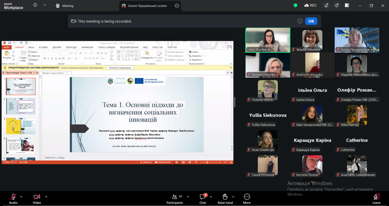 У межах Практикуму було представлено три змістовні дистанційні курси, присвячені практикам інклюзивного проєктування в ЄС (викладач д.е.н., професор, член-кореспондент Лідія Василівна ШИНКАРУК), політиці соціальної інтеграції (викладач д.е.н., професор Марина Миколаївна ДЄЛІНІ) та дослідженню соціальних інновацій (викладач д.е.н., професор Емілія Василівна ПРУШКІВСЬКА). Під час навчання студенти ознайомилися з сучасними європейськими підходами до формування інклюзивного суспільства, зрозуміли механізми забезпечення рівного доступу до економічних можливостей, а також опанували основи проєктного мислення та розробки соціально орієнтованих ініціатив. Особливу увагу було приділено практичним аспектам створення та масштабування соціальних інновацій – від визначення проблеми до залучення фінансування та оцінки соціального впливу.