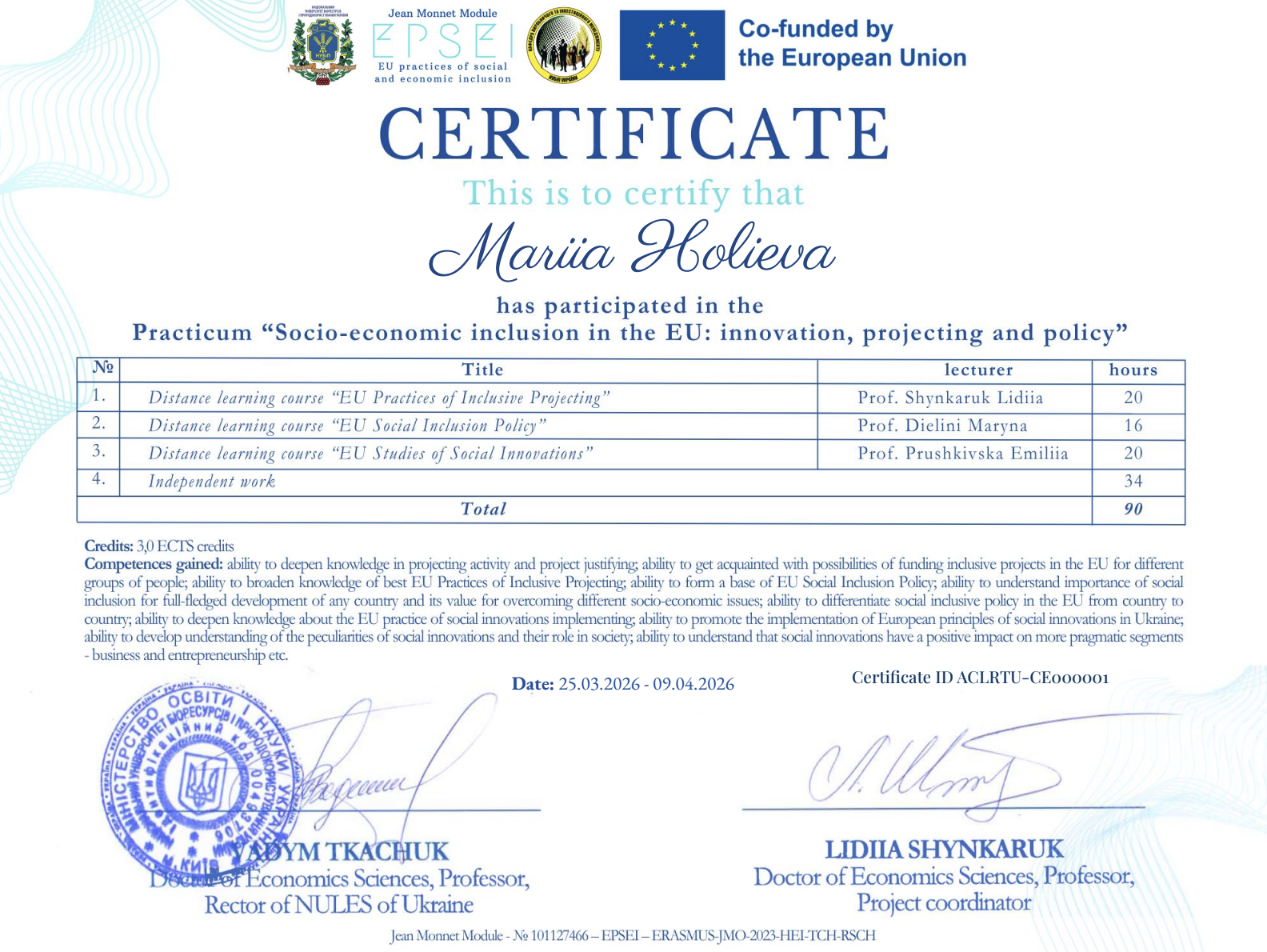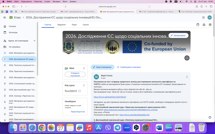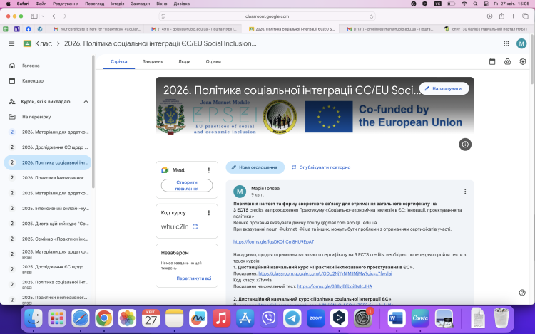 Підсумки Практикуму «Соціально-економічна інклюзія в ЄС: інновації, проєктування та політики» в рамках імплементації проєкту Програми Європейського Союзу Еразмус+, модуль Жан Моне «Практики соціальної та економічної інклюзії в ЄС»