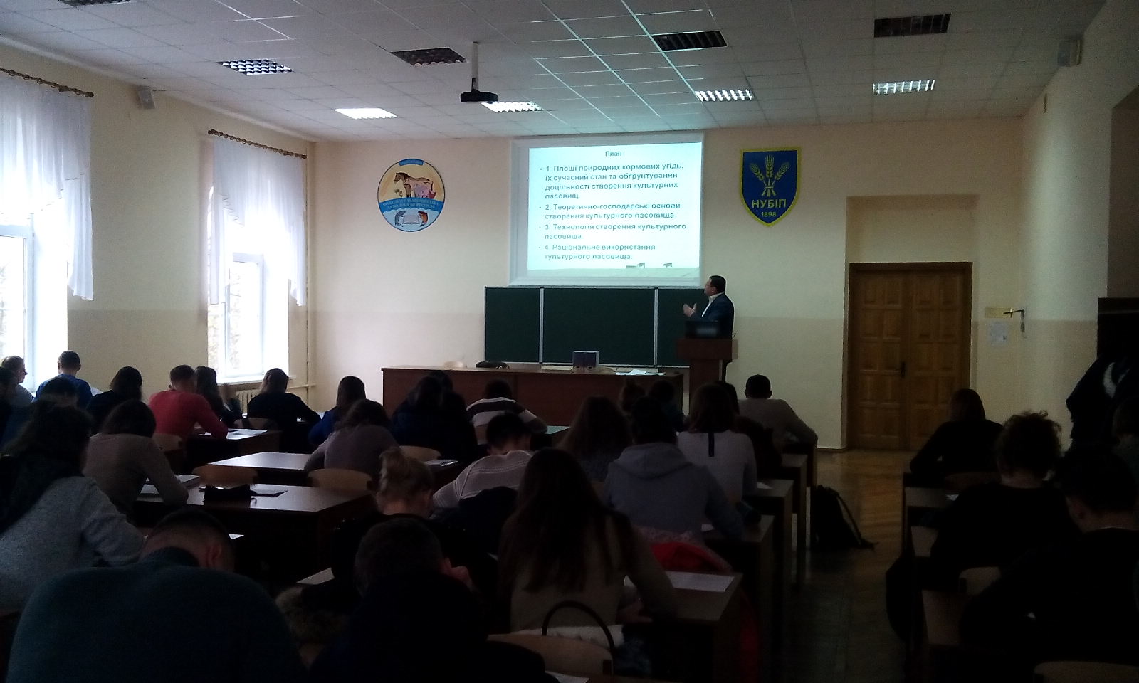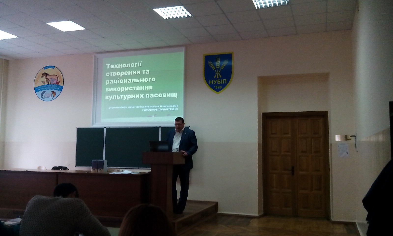 9.11.2016 р. в аудиторії 87, 1-го навчального корпусу відбулася відкрита лекція доцента кафедри кормовиробництва, меліорації і метеорології Коваленка Віталія Петровича з дисципліни «Кормовиробництво». Лекція прочитана на тему «Технології створення та раціонального використання культурних пасовищ» для студентів 2-го курсу факультету тваринництва та водних біоресурсів, напряму підготовки 6.090102 - «Технологія виробництва і переробки продукції тваринництва». На лекції були присутні викладачі кафедри, які засвідчили високий професійний рівень лектора, активність та зацікавленість студентів запропонованою темою, педагогічною майстерністю та грунтовними знаннями Коваленка В.П.