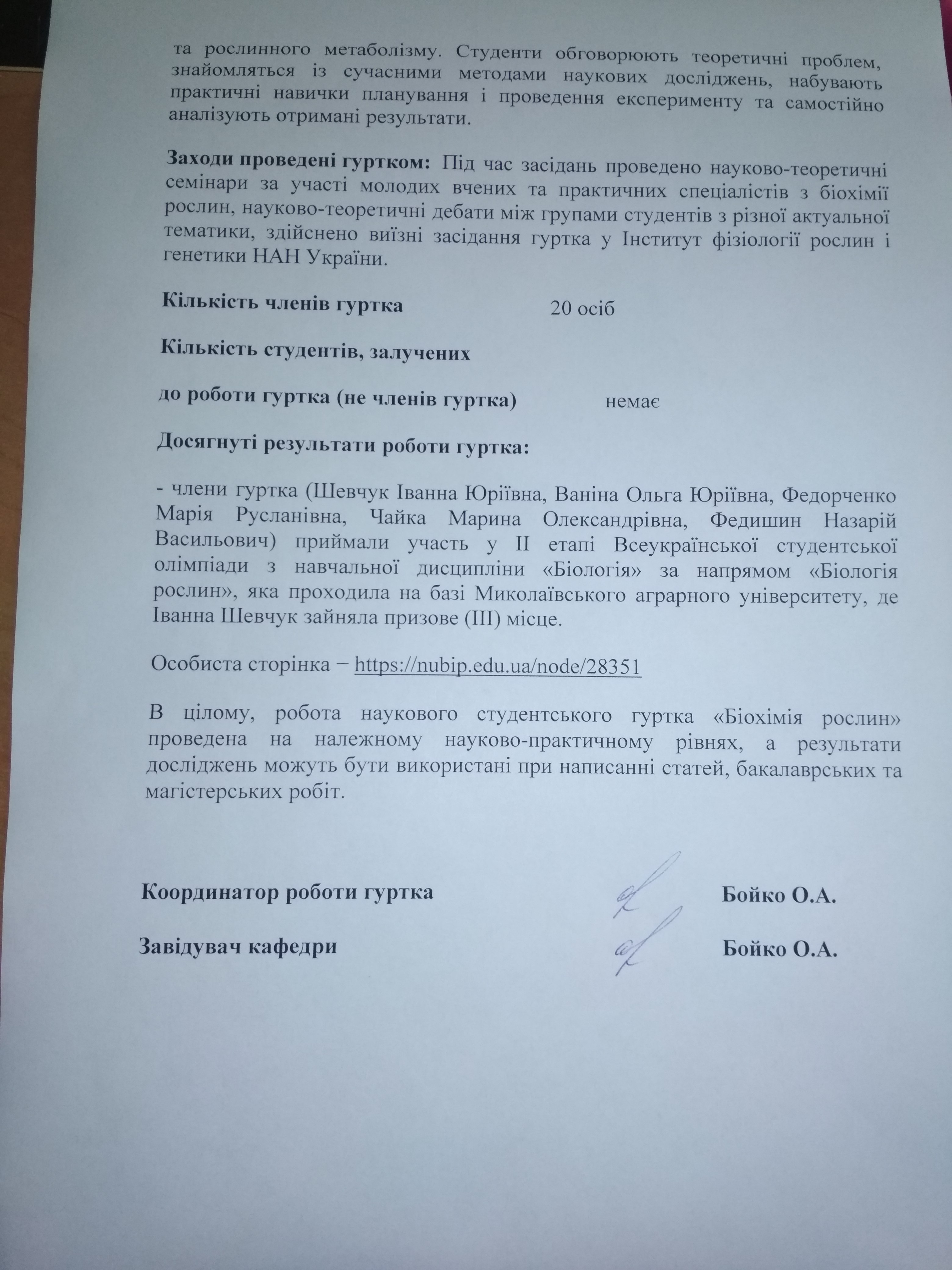 18. | Студентська конференція на базі гуртка з біохімії рослин. | 10.02.22 | ауд. 38, к. 4 | Бойко О. А. |