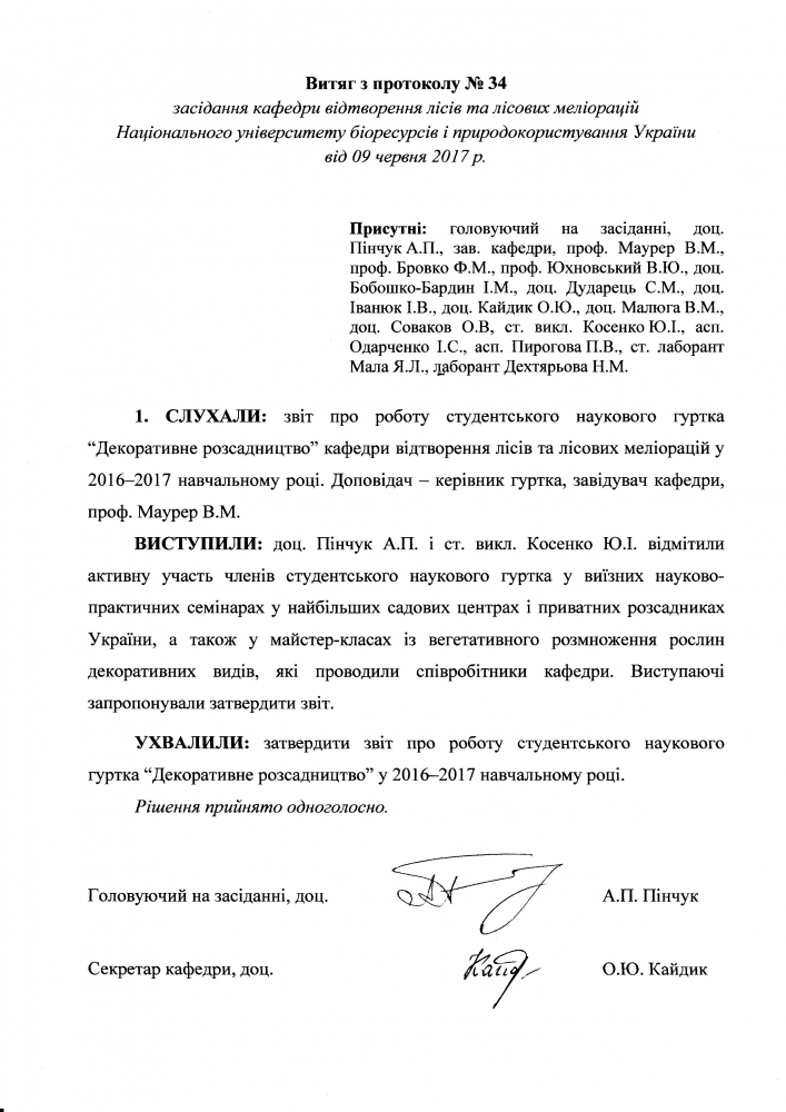 Витяг із протоколу засідання кафедри
