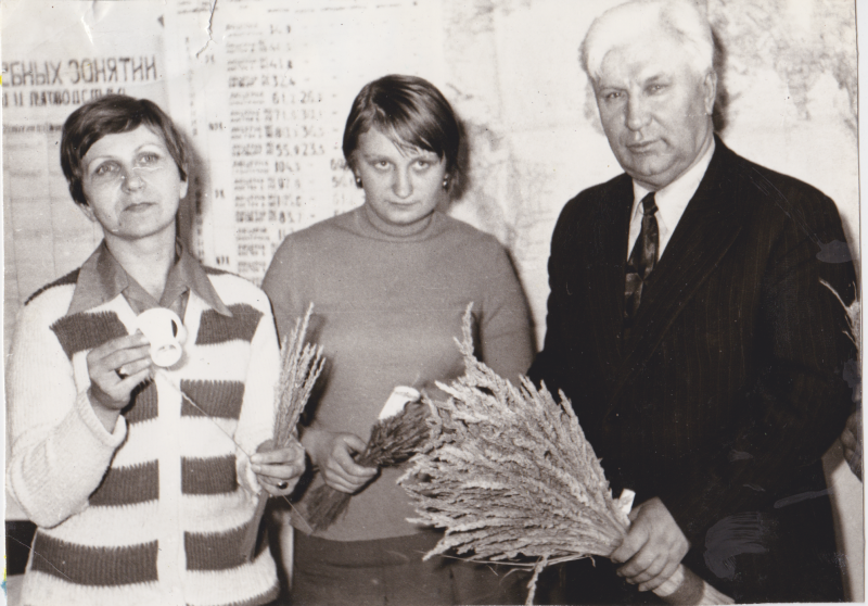 (на фото: кандидат сільськогосподарських наук, доцент Р.Т. Івановська, старший лаборант В.І. Іскра, професор В.І. Мойсеєнко).