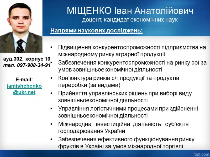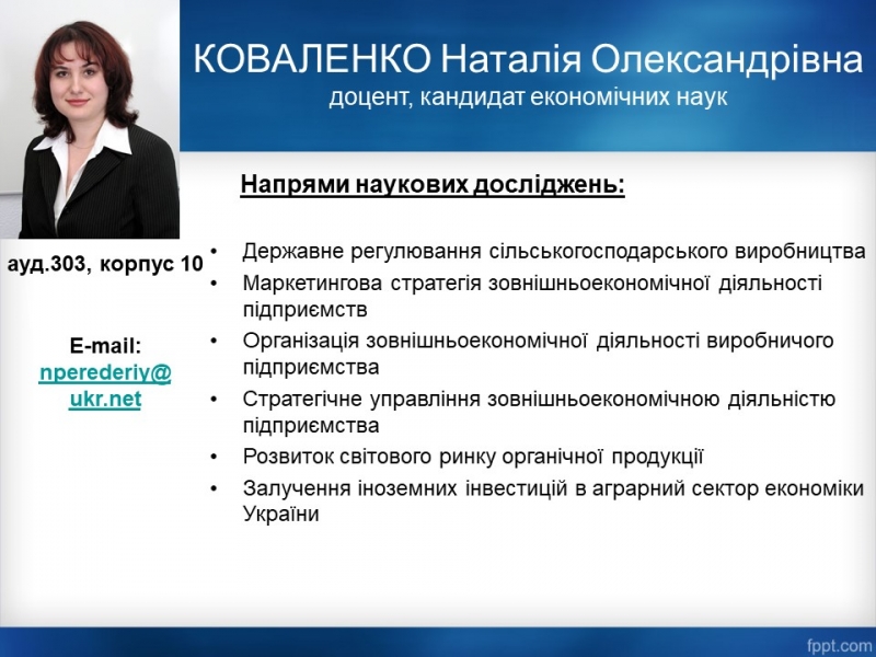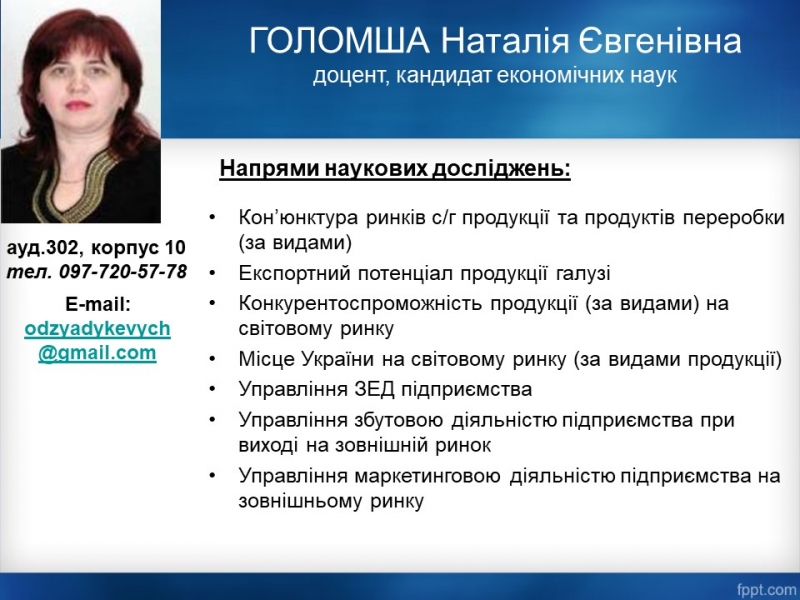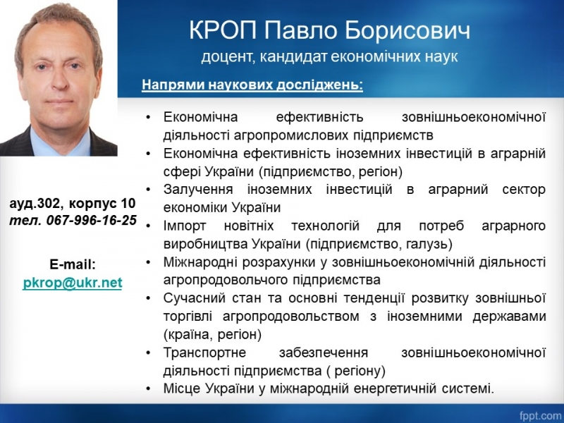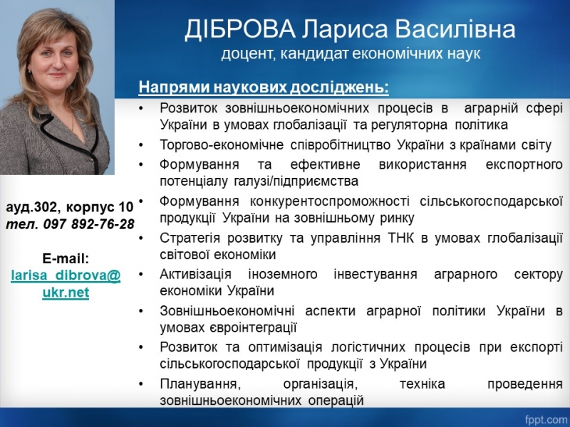 Презентація кафедри для студентів 4 курсу факультету аграрного менеджменту