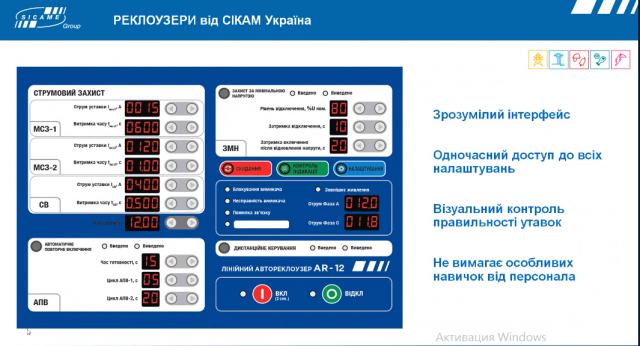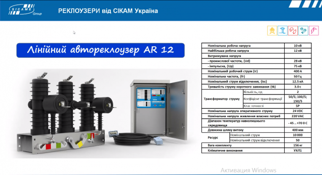Поряд із цим фахівці компанії SICAME Україна розповіли і продемонстрували новітній реклоузер власної розробки та пристрої пошуку місць пошкоджень в розподільчих мережах напругою 6 – 20 кВ.