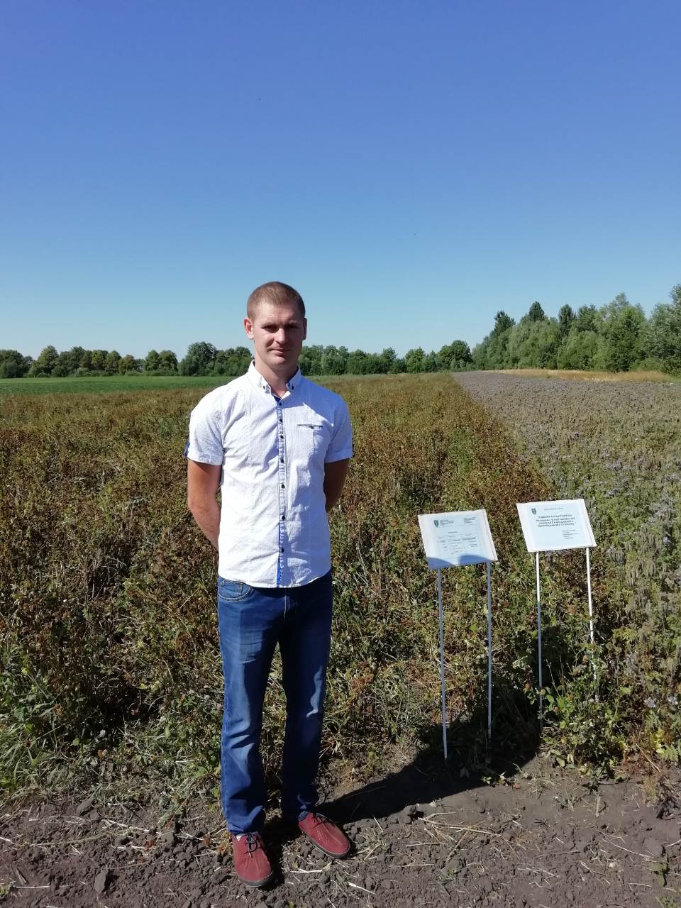 Аспірант Ігор Галушко заклав ділянки різних сортів конюшини лучної як в чистих посівах, так і під покривом ячменю ярого. Роботи проводяться згідно програми досліджень та відповідно до обраної схеми досліду. Один із важливих факторів підвищення якості вирощеної зеленої маси – правильний видовий підбір кормових культур в агрофітоценозі, що забезпечує оптимальні умови для росту й розвитку злакових і бобових трав у період вегетації. Найвищим вмістом кормового білка характеризуються бобові трави. Проте вони відзначаються невисоким вмістом вуглеводів, тому доцільніше їх висівати у сумішках із злаковими культурами. Над цими та іншими питаннями працюють аспіранти Едуард Лихошерст, Максим Квітко, Ігор Галушко, Максим Захлєбаєв.
