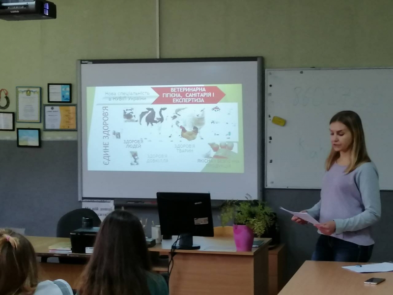 Одинадцятикласникам було представлено презентаційний та друкований матеріал про умови вступу до НУБіП України, зокрема, на факультет ветеринарної медицини. Також надано інформацію про сайт університету та факультету і підготовчі курси для абітурієнтів.